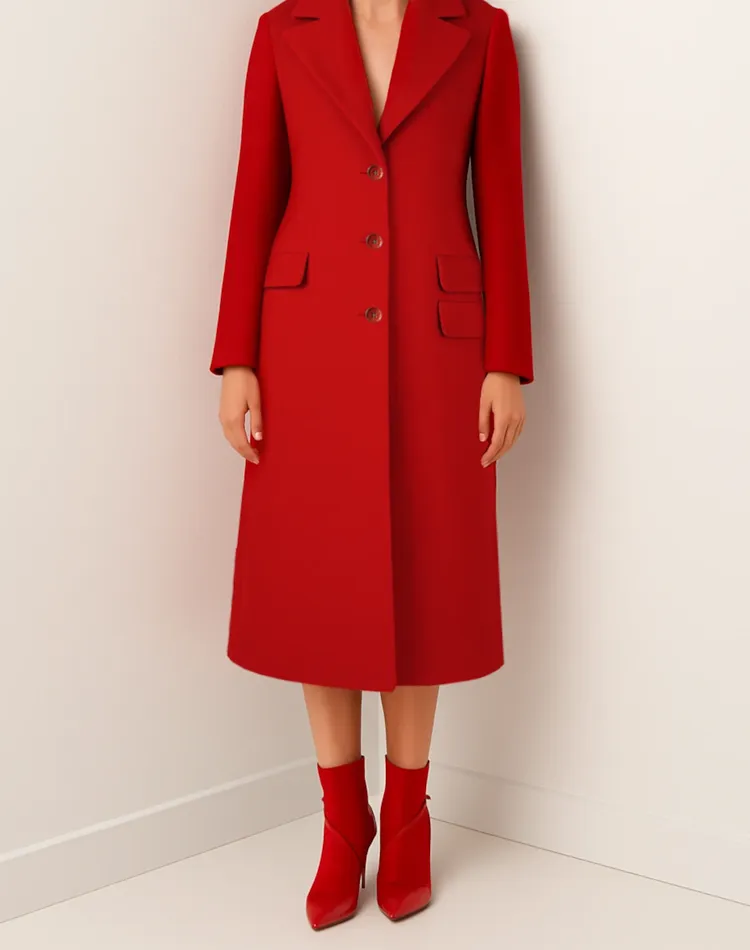 Casaco comprido Sahoco em lã premium. O design estruturado com lapelas clássicas e abotoamento frontal transmite elegância intemporal. Detalhe posterior com faixa e botões para um ajuste refinado. Perfeito para completar coordenados elegantes em dias frios, combinando modernidade com sofisticação.
