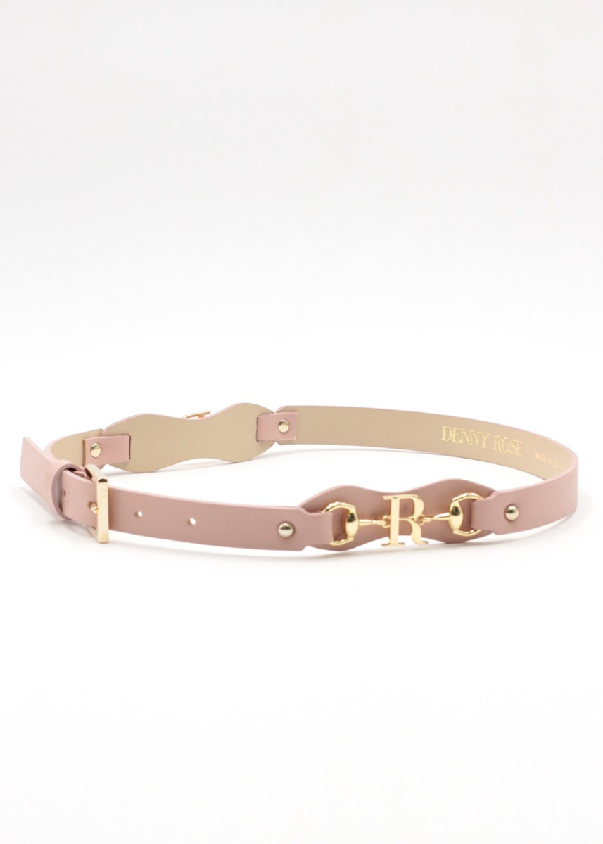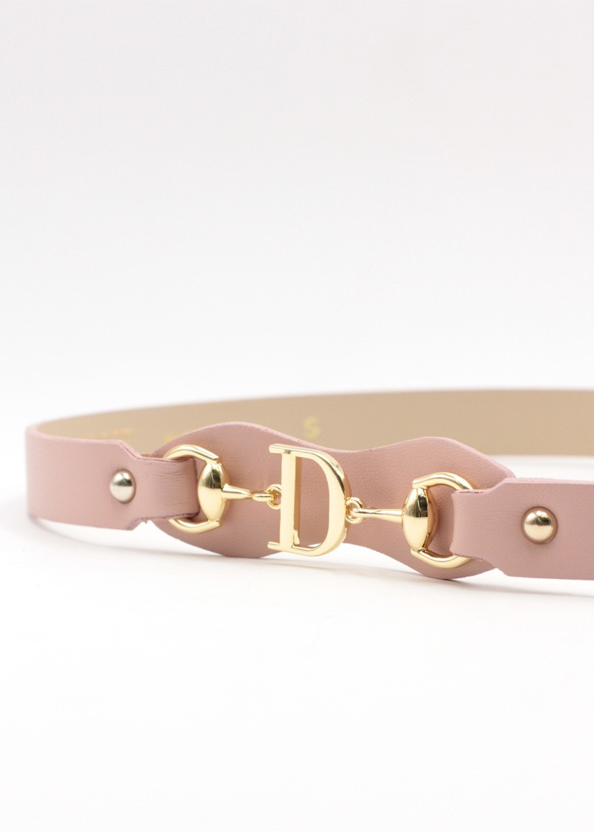 Cinto rosa fino com aplicações douradas