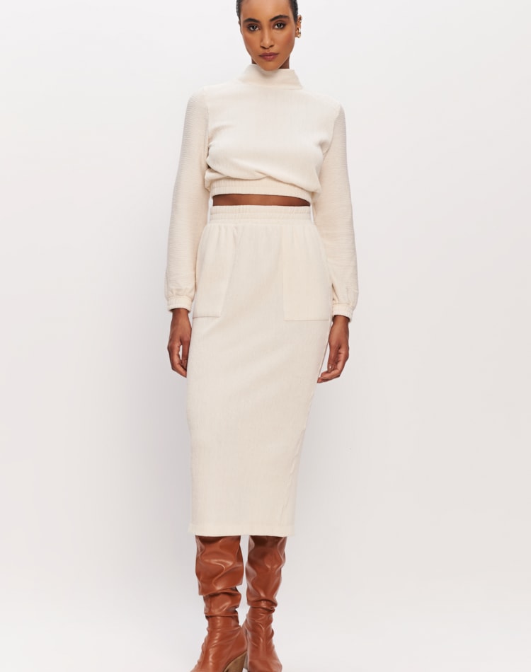 O conjunto perfeito para estar na moda e se sentir confortável com o Conjunto Blusa Manga Longa Cropped E Saia Cargo Supermidi De Malha Feminino Dimy. Feito com 80% de algodão e 20% de poliéster, esse conjunto da marca DIMY combina estilo e qualidade. Compre agora
