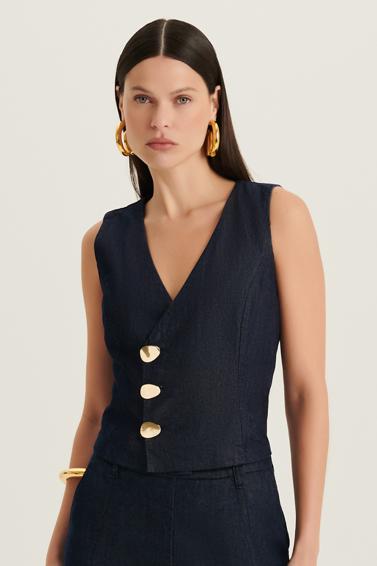 O Colete Feminino Alfaiataria Jeans Dimy é a peça perfeita para compor um look moderno e estiloso. Feito 100% em algodão, proporciona conforto e versatilidade para diversas ocasiões. A qualidade do jeans feminino Dimy garante durabilidade e estilo atemporal. Aposte nessa tendência!