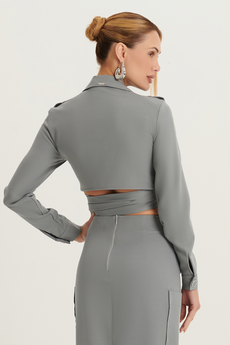 A camisa feminina cropped utilitária Dimy, garantindo conforto e durabilidade. Com tecido plano e design moderno, é perfeita para compor looks estilosos e versáteis. Adquira já a sua e arrase no visual!