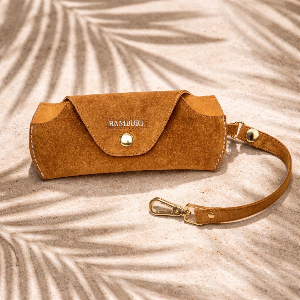 Um acessório sofisticado concebido para proteger os seus óculos com elegância discreta. Confeccionado em suave camurça, este estojo combina uma silhueta intemporal com funcionalidade prática, tornando-se ideal para o uso diário.