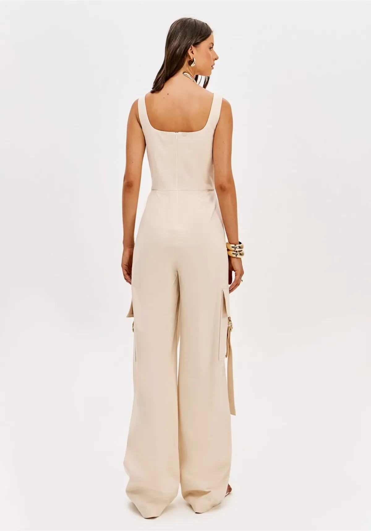 O macacão longo confeccionado em tecido encorpado aposta em uma modelagem moderna com busto ajustado, decote quadrado, alças largas e fechamento posterior por zíper. Bolsos funcionais cargo finalizam o modelo com apelo urbano. Invista!