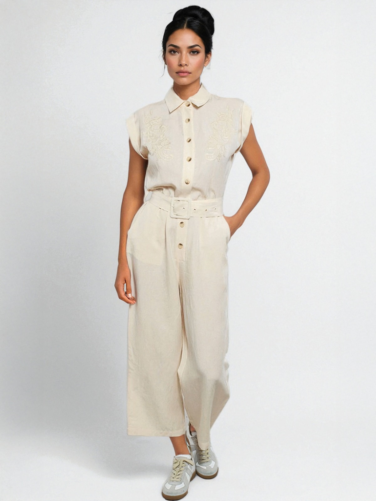 - Cintura com presilhas e cinto a condizer com fivela forrada