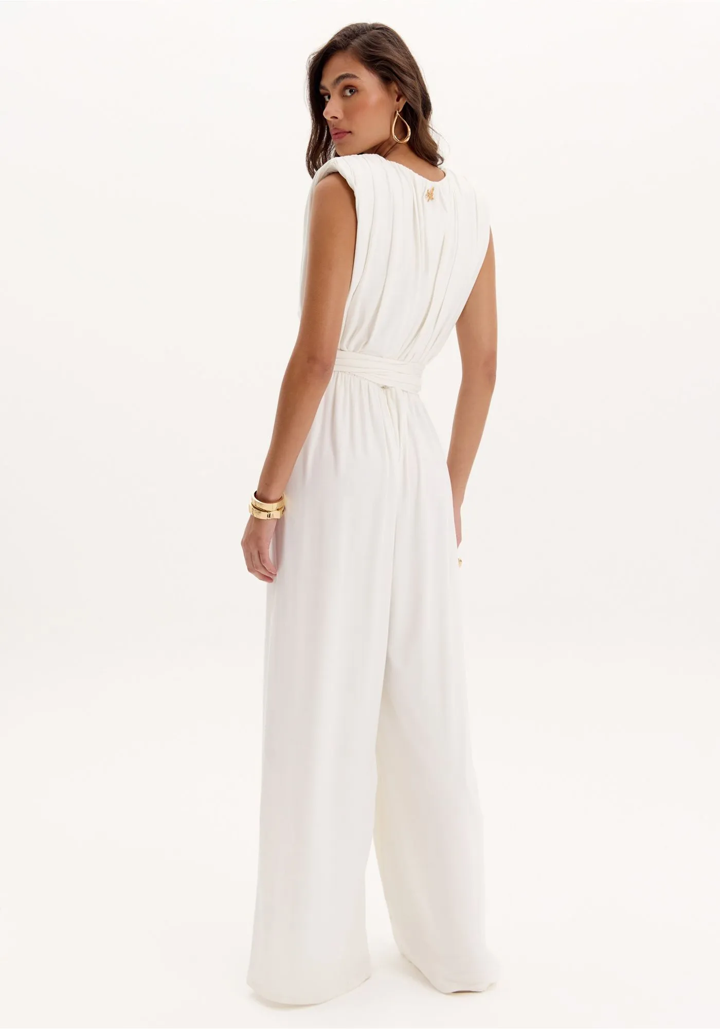 o macacão amplo conta com o charme do decote em v para adicionar poder e feminilidade às produções. acompanha faixa ajustável para completar o visual