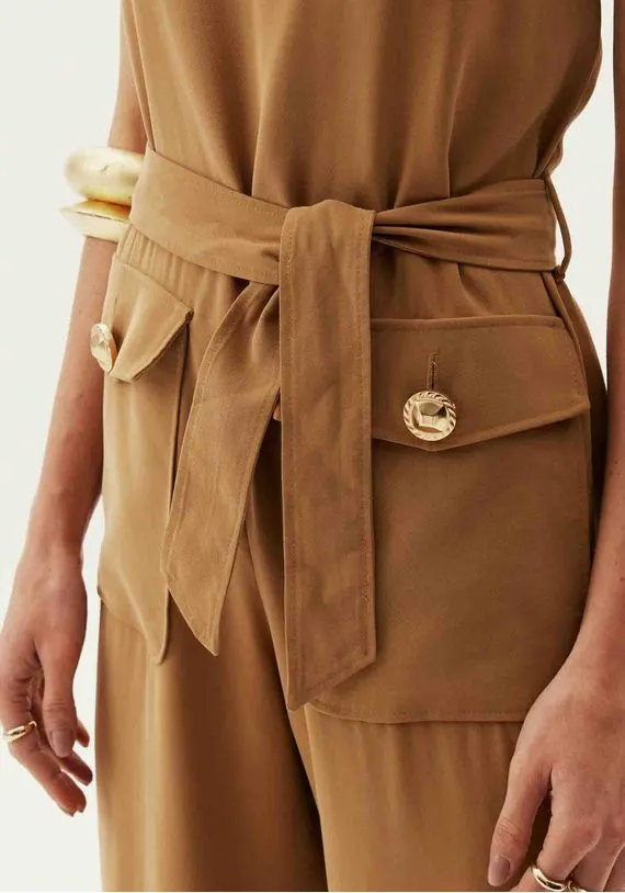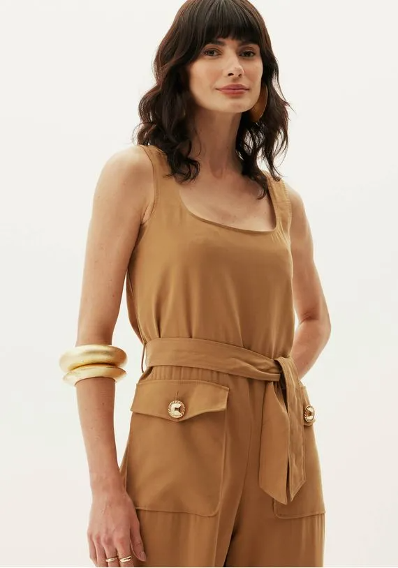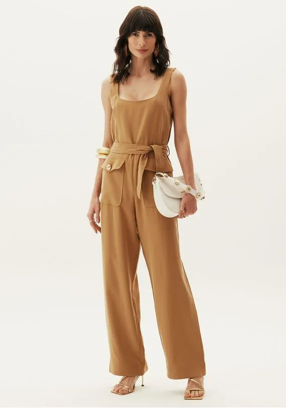 Macacão longo é uma aposta versátil e atemporal. Apresenta decote quadrado, bolsos frontais e amarração na cintura. Aposte!
