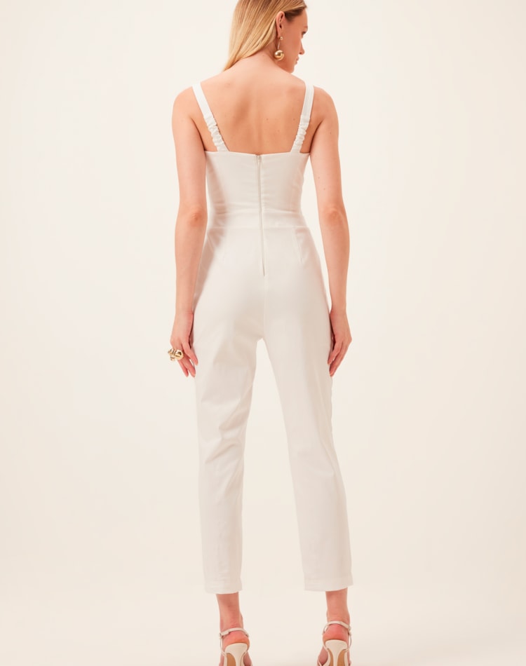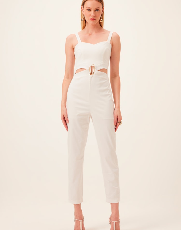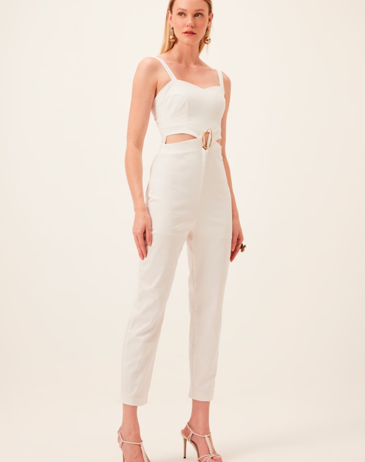 macacão feminino dimy, com detalhes de metal e recortes em tecido plano. ele é perfeito para deixar seu visual estiloso e confortável. aproveite essa oferta exclusiva e adquira já o seu!