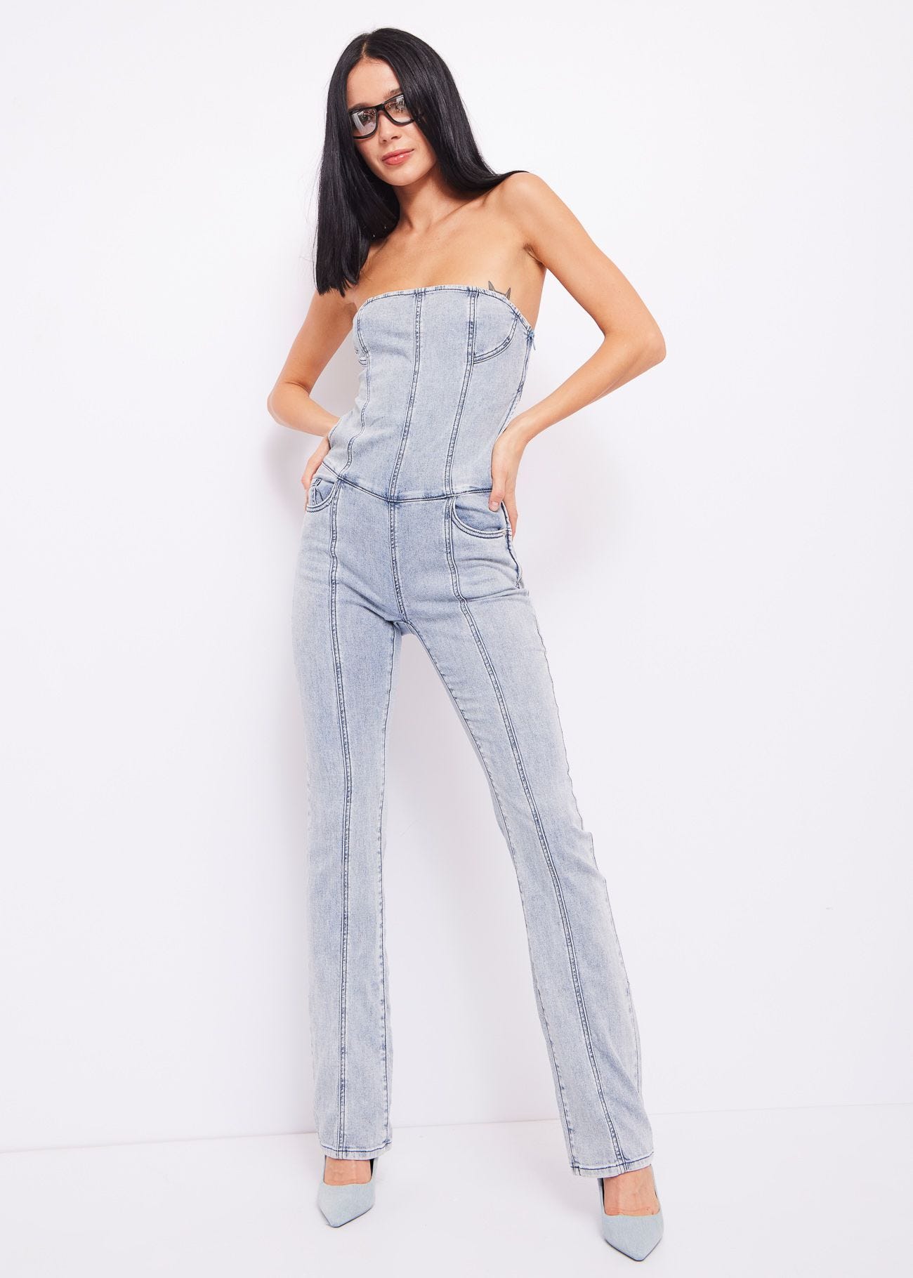 Macacão em jeans stretch de algodão