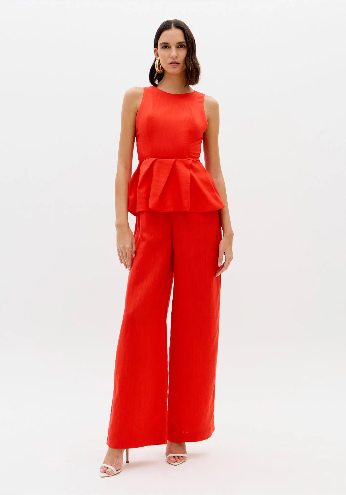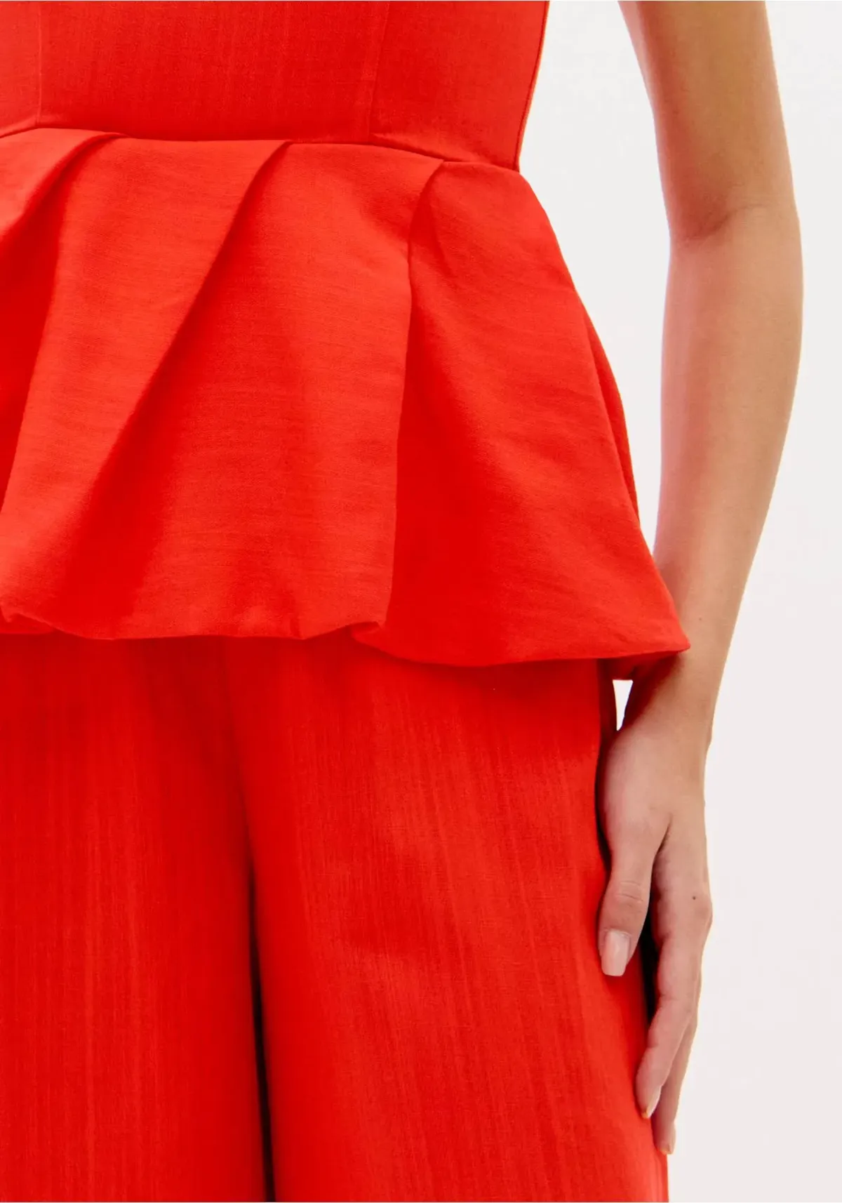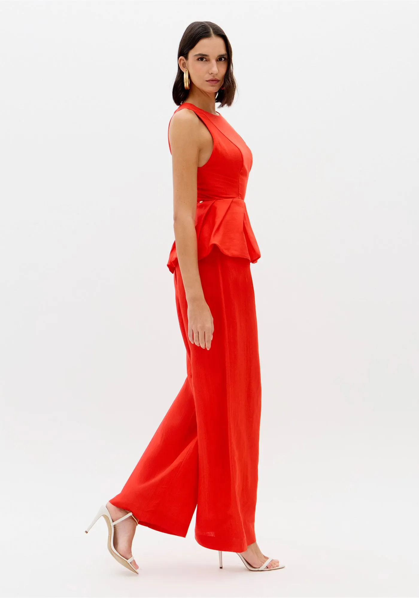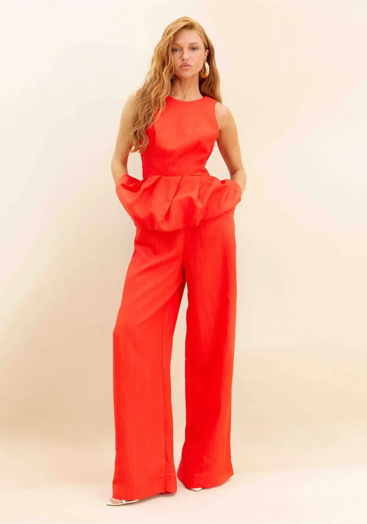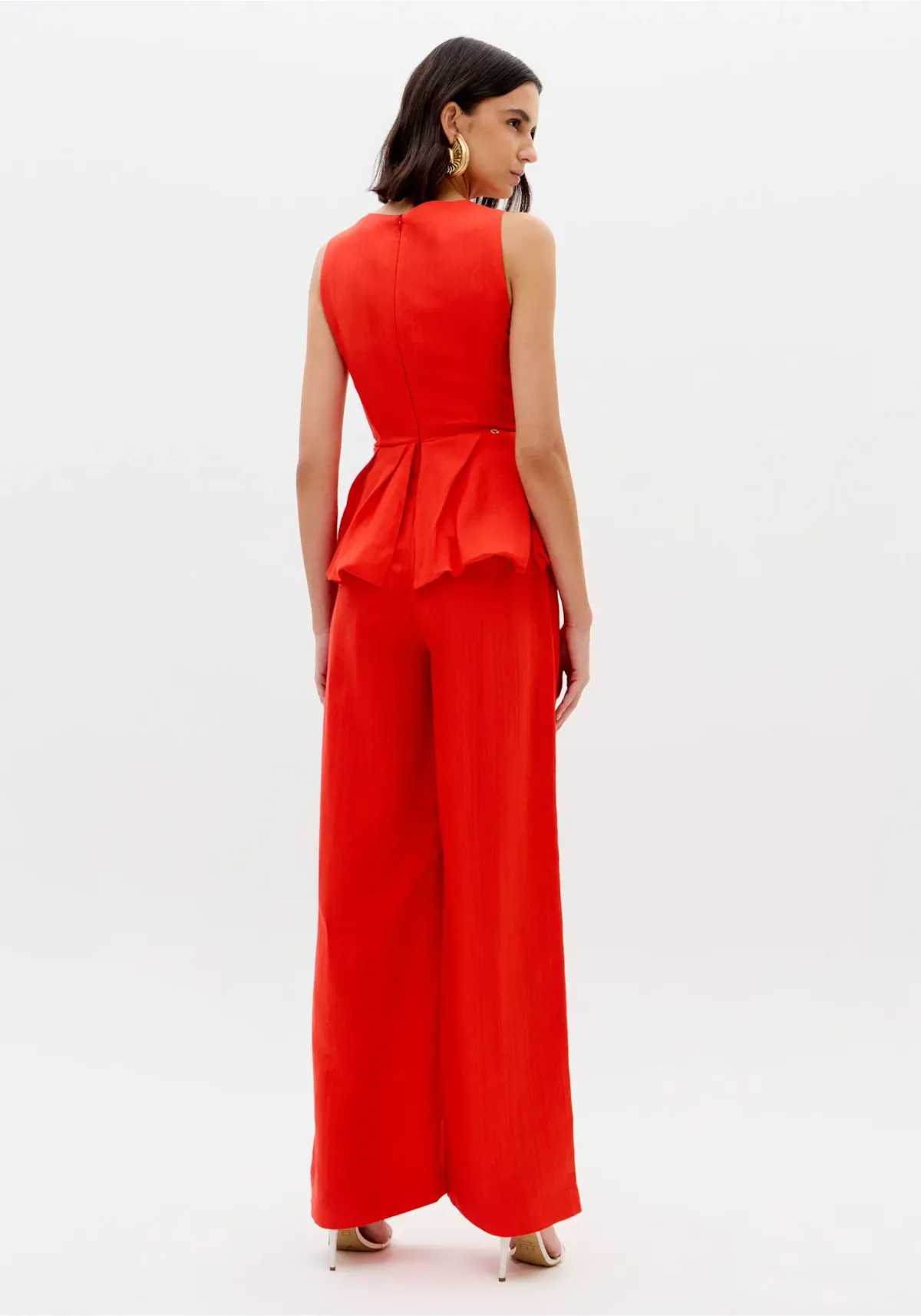 O macacão longo confeccionado em tecido plano com linho traz decote redondo, fechamento posterior por zíper e modelagem ajustada no busto. O destaque fica por conta da cintura com efeito balonê que cria volume e imprime personalidade à silhueta. Invista!