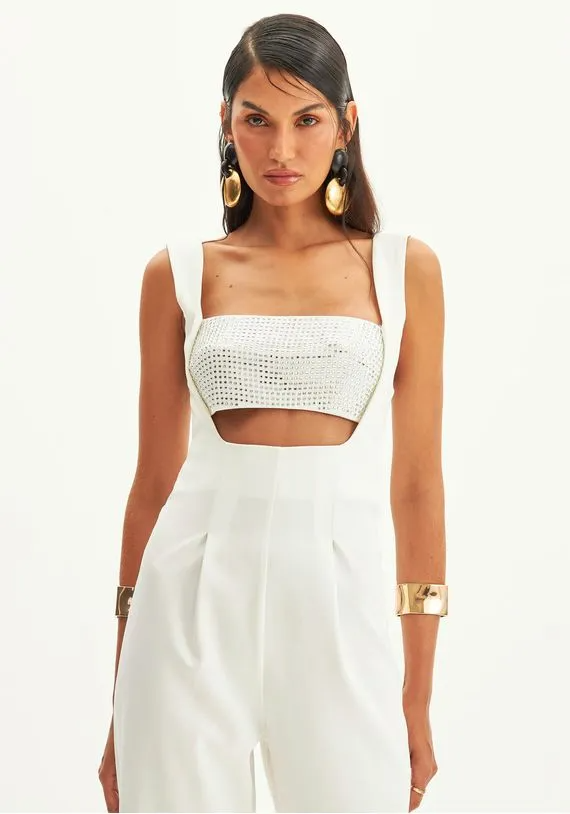 MACACÃO LONGO COM CRISTAIS BRANCO
