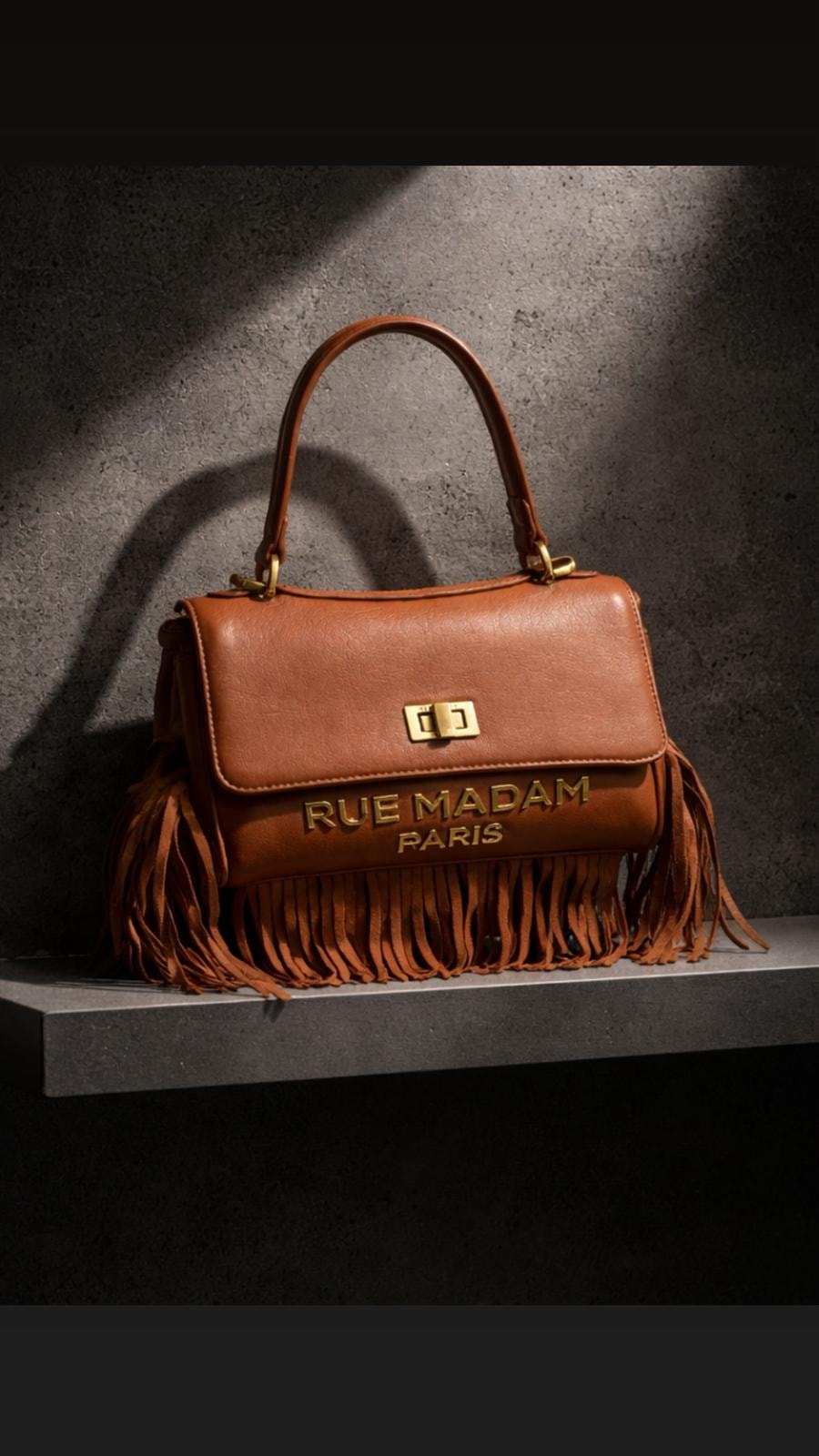 Bolsa de ombro pequena em couro sintético macio, com design sofisticado e atemporal. Enfeitada com franjas de camurça que adicionam movimento e personalidade, e um logotipo metálico com efeito vintage e fecho giratório para um acabamento refinado. Equipada com alça de mão e alça de ombro removível para uso versátil, inclui um compartimento central e forro de algodão com bolso interno para manter seus pertences organizados.