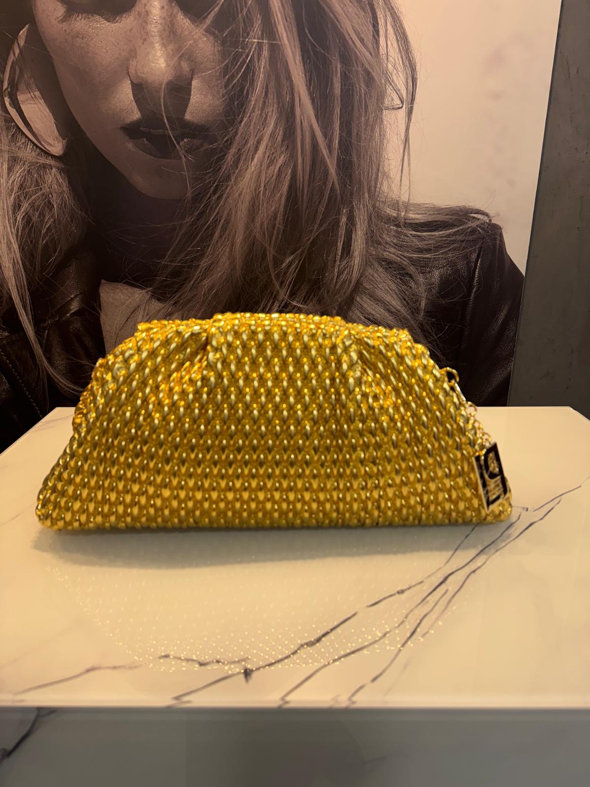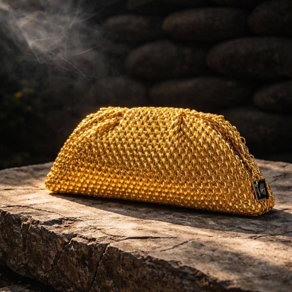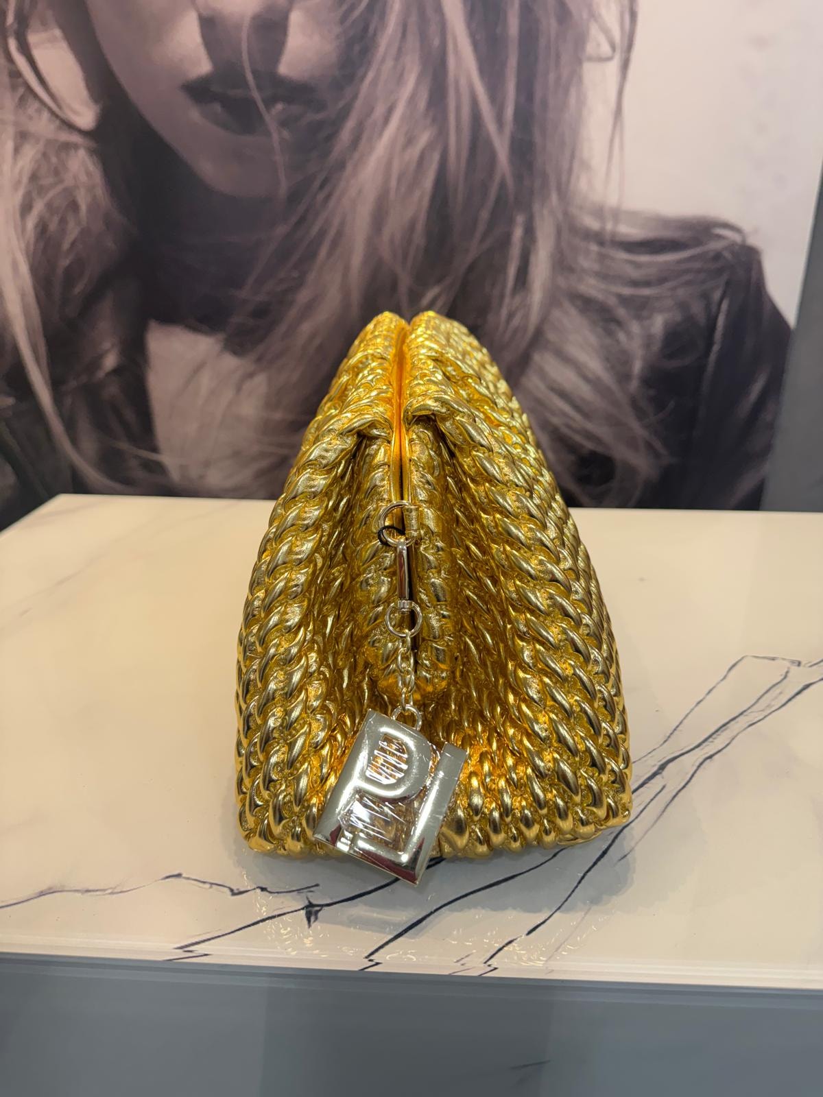 a bolsa clutch exibe matelassê texturizado com acabamento metalizado que destaca o visual com glamour. A corrente delicada permite uso no ombro, enquanto o interior com bolso organiza com praticidade. Ideal para eventos e ocasiões especiais!