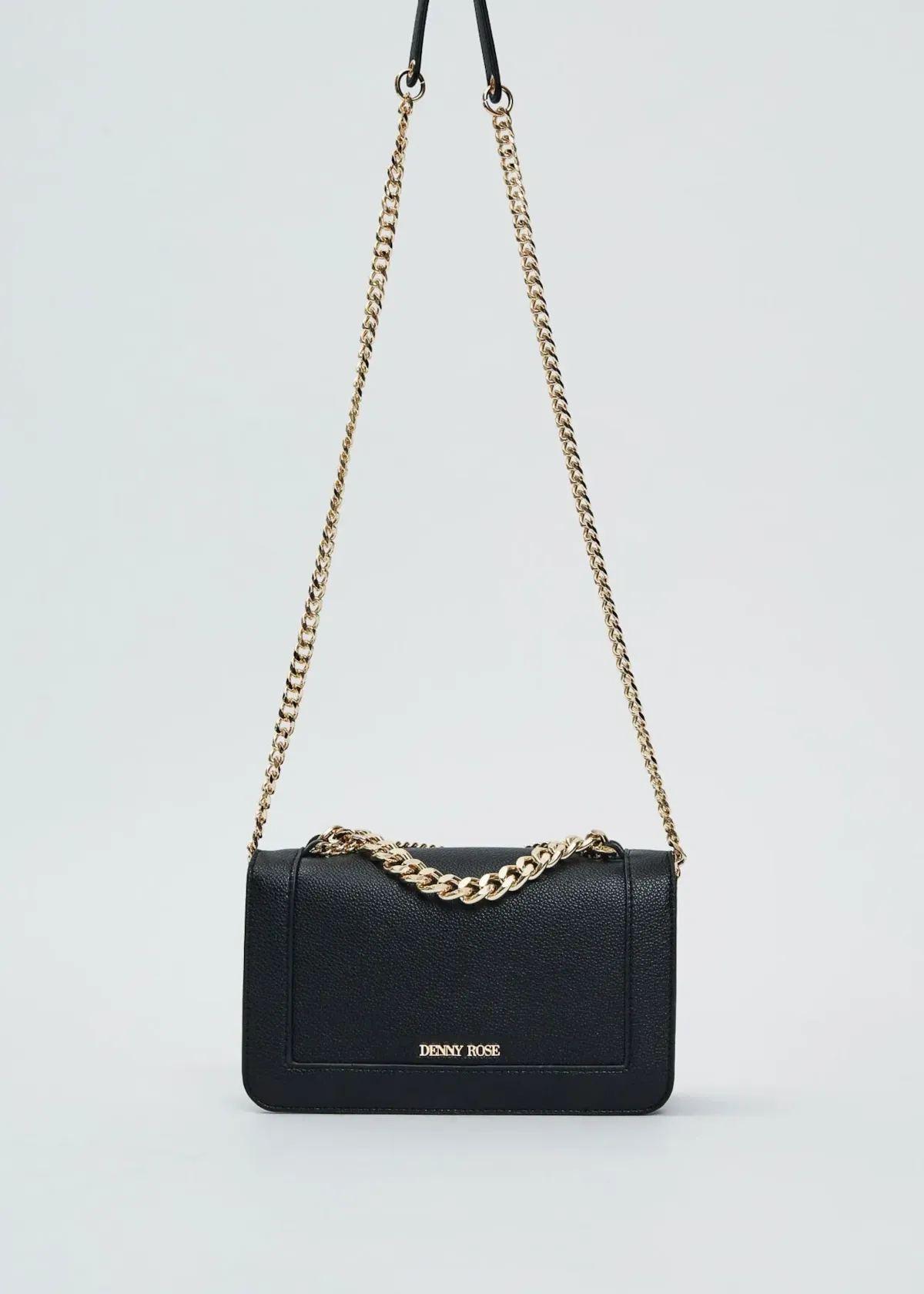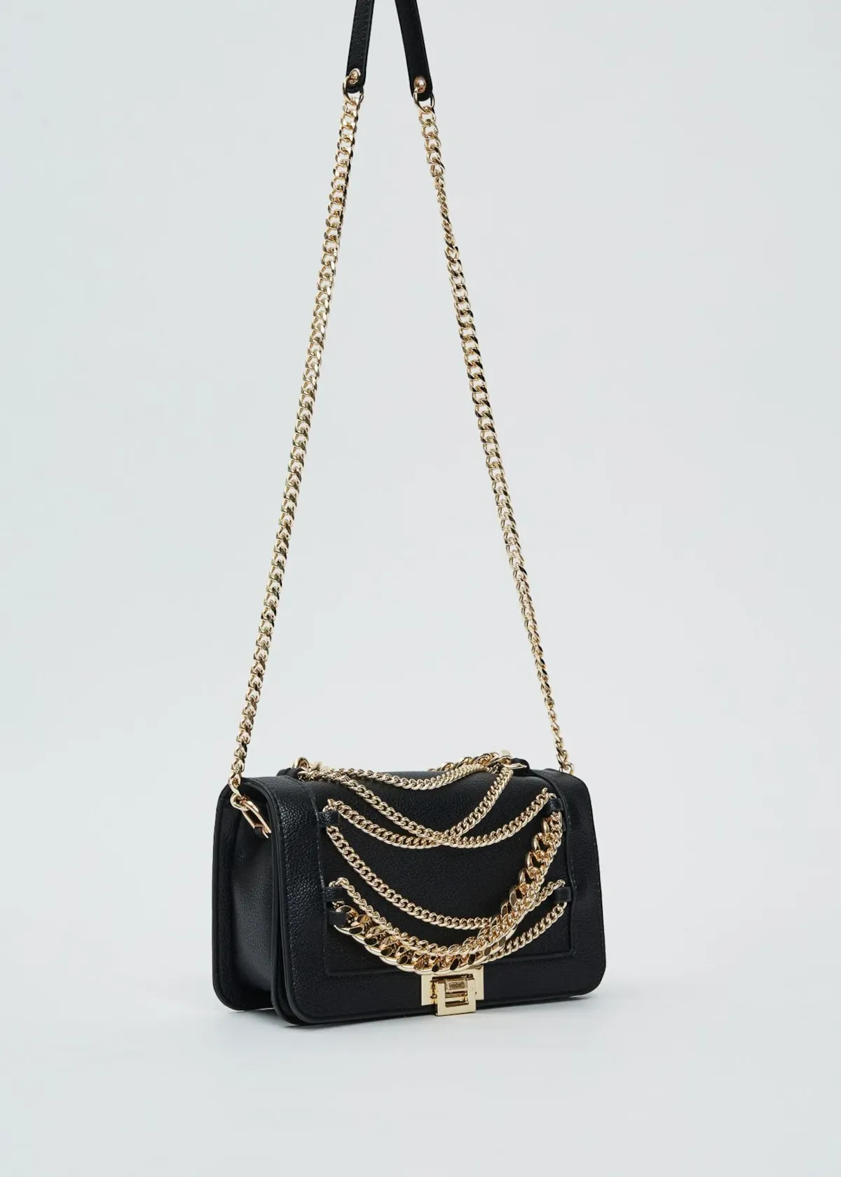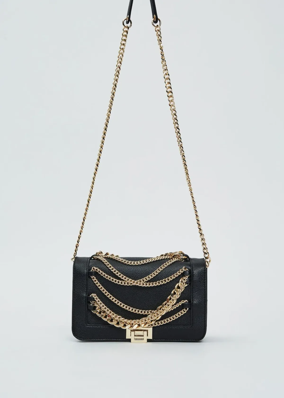 Mala tiracolo em pele sintéticaCorrentes de metal douradoAlça de ombro em correnteForro