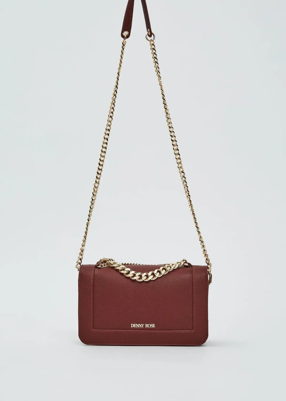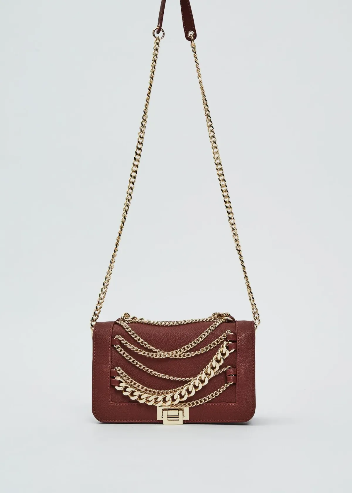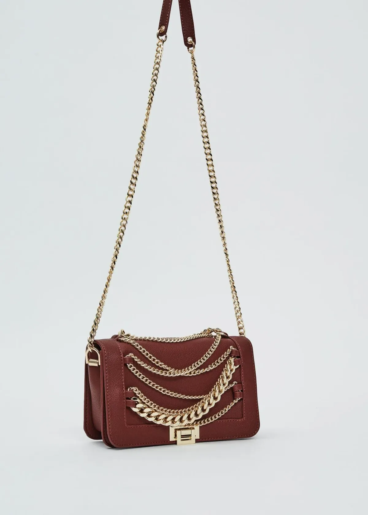 Mala tiracolo em pele sintéticaCorrentes de metal douradoAlça de ombro em correnteForro