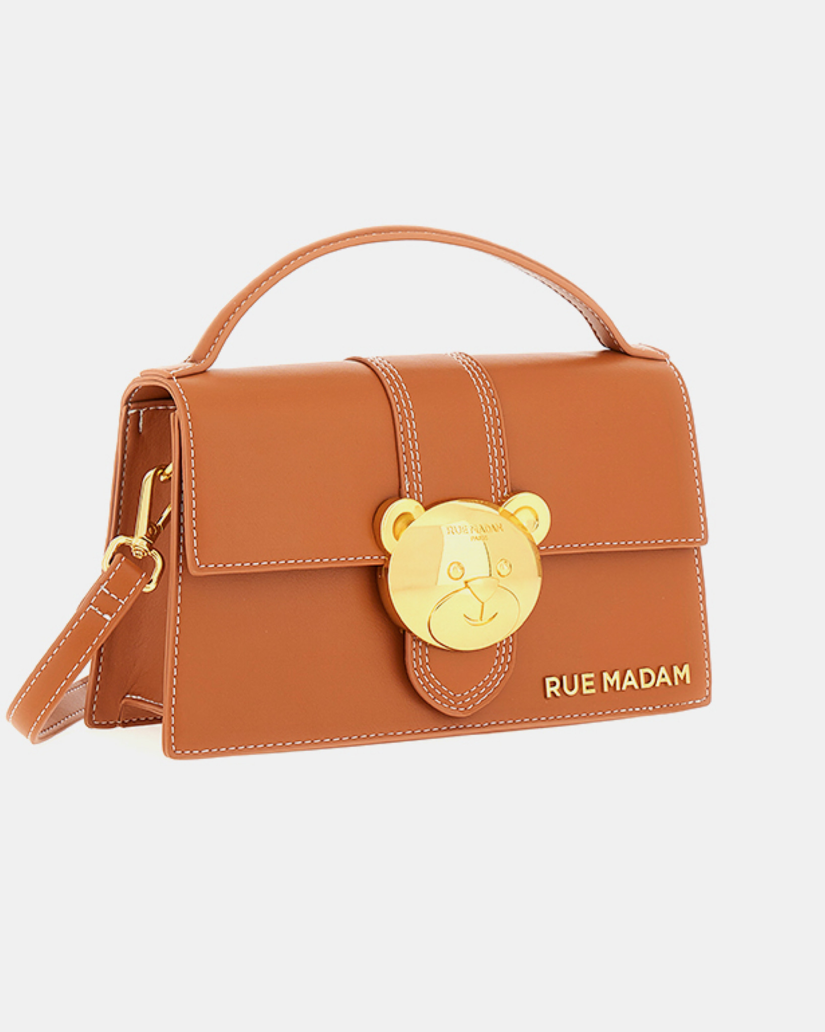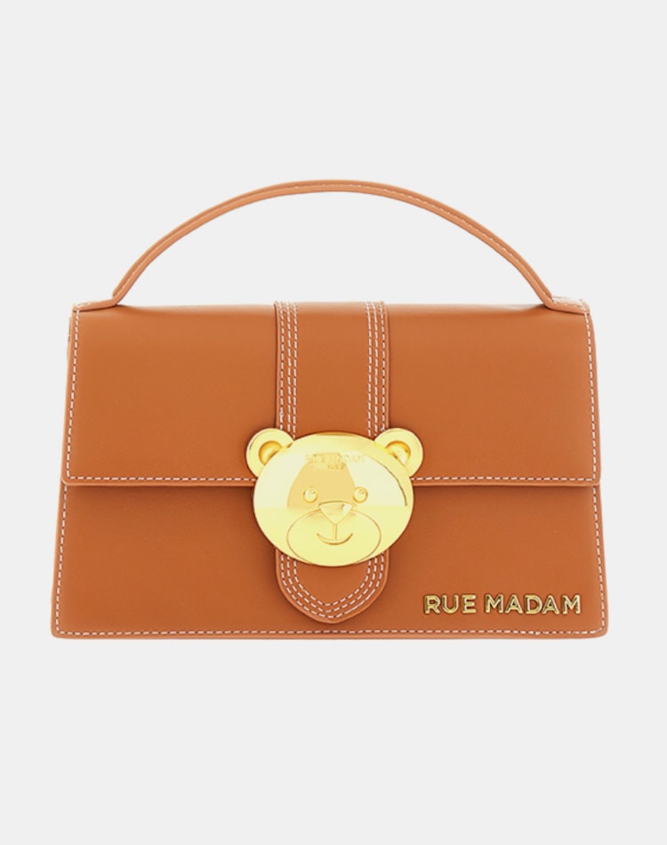 Bolsa de ombro vegana de couro ecológico com fivela de ursinho de pelúcia em metal com efeito ouro antigo. Alça de ombro removível e ajustável e forro interno de algodão com bolso. C 25 L 7,5 A 14,5