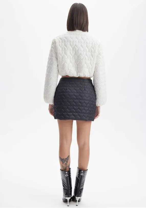 Saia curta possui acabamento em matelassê, cintura alta, recortes e versatilidade para vestir em diversas ocasiões.