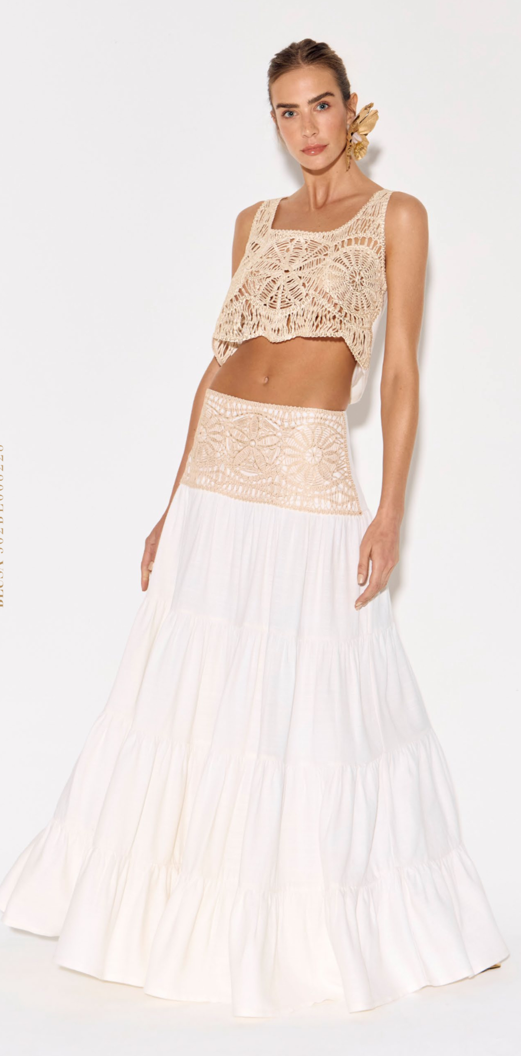 SAIA COMPRIDA COM BORDADO LANÇA PERFUME