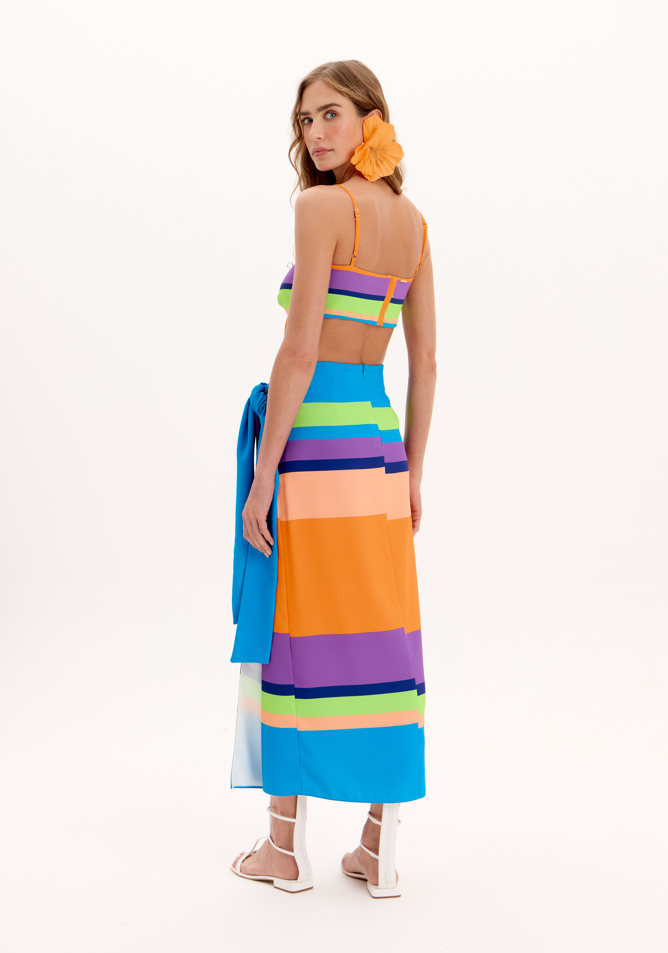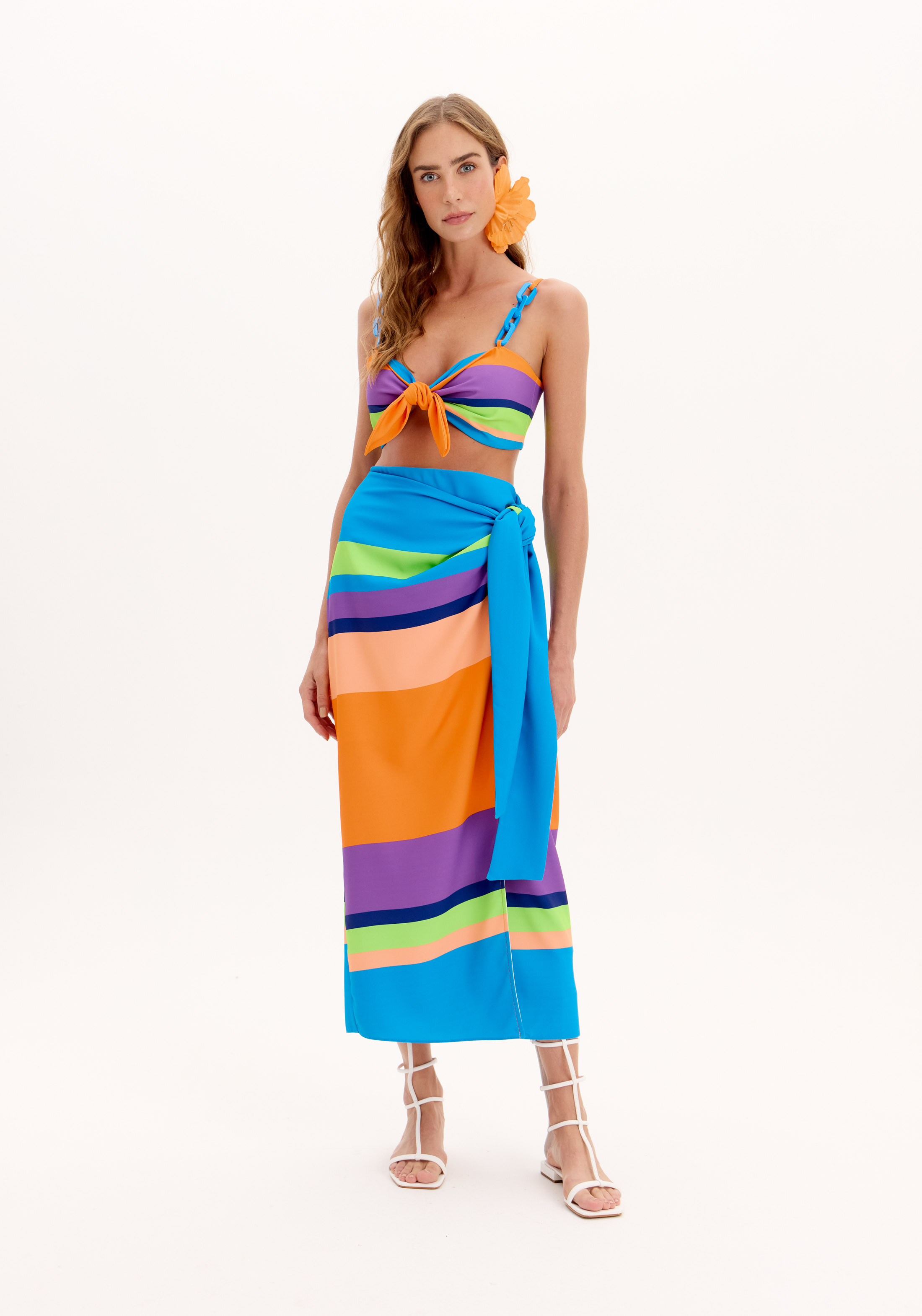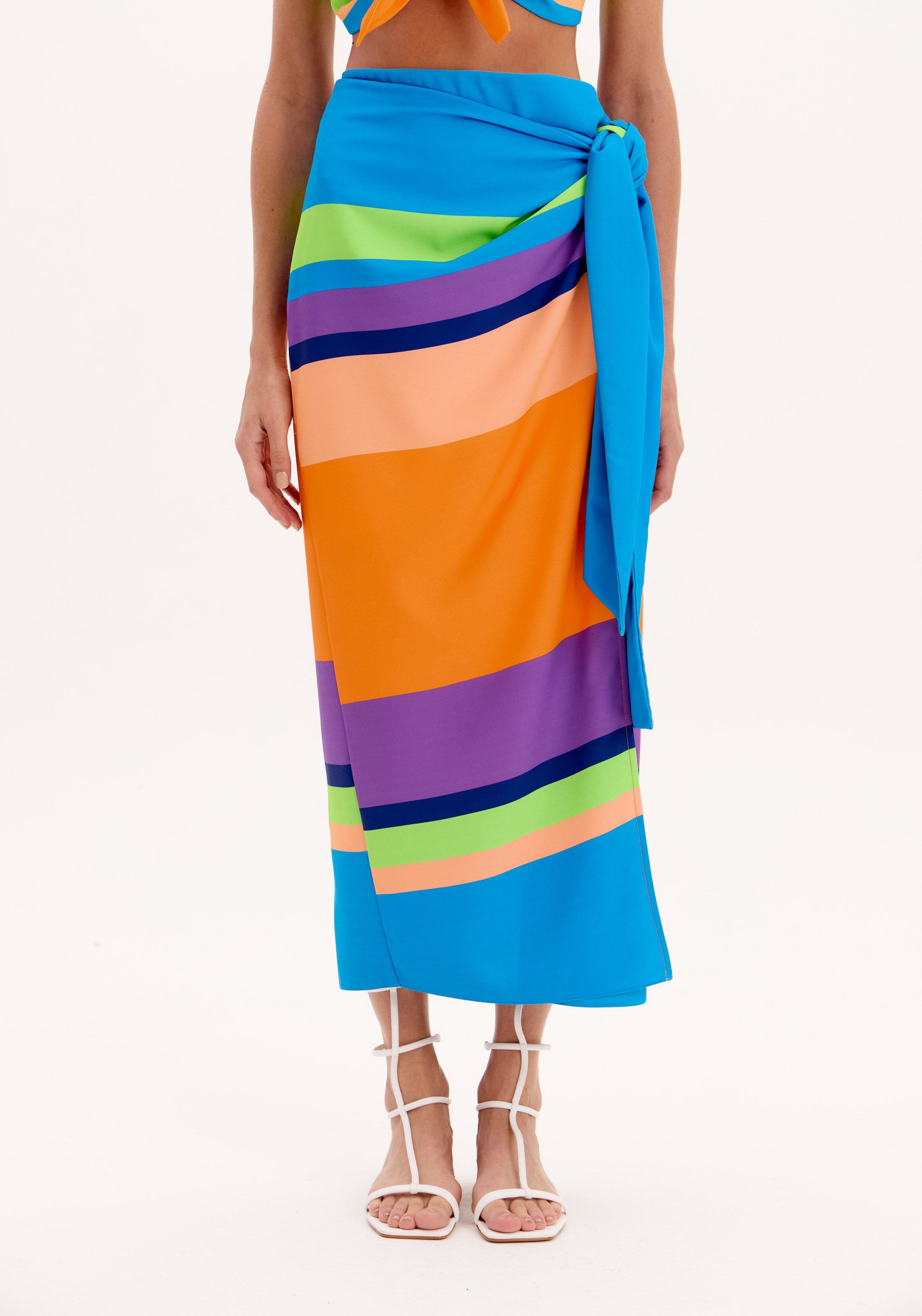 SAIA COMPRIDA AZUL COM ESTAMPA