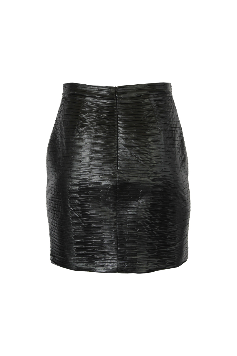 Minissaia em tecido com efeito pele com textura. Cintura média com cós.