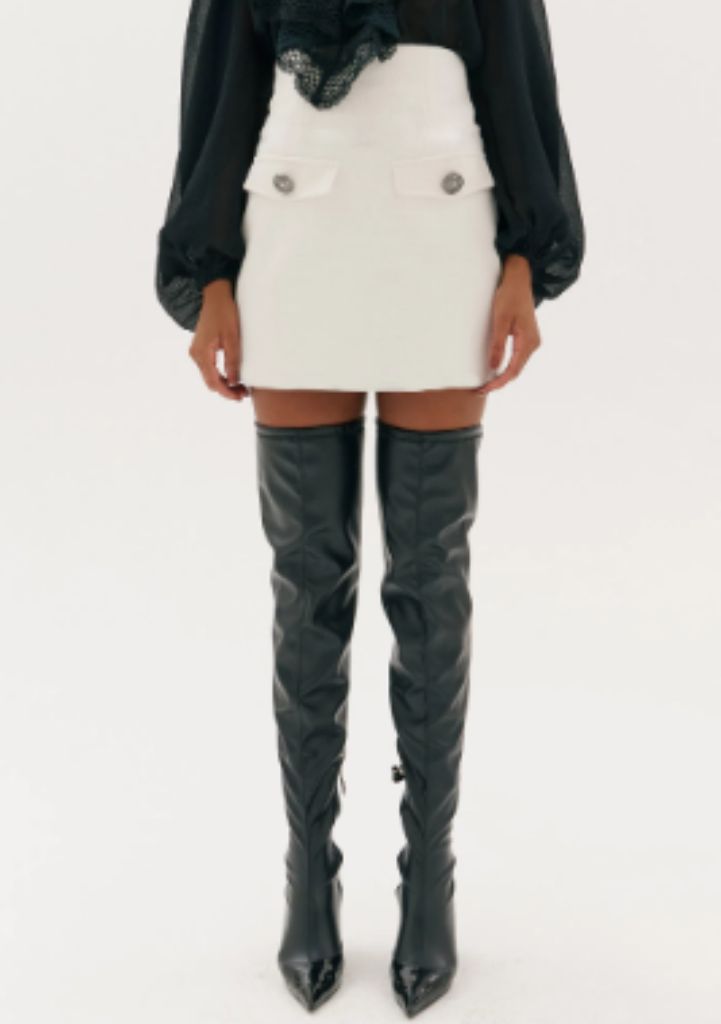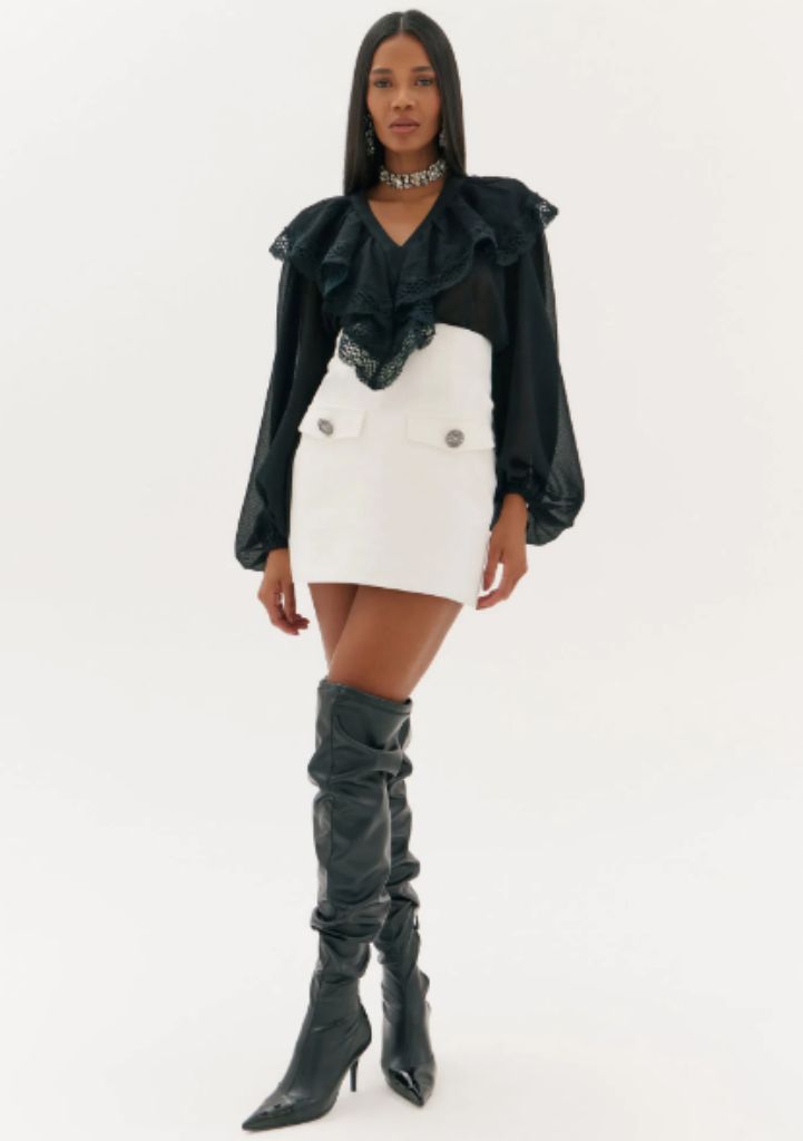 Saia curta de cintura alta atualiza o closet com muito mais estilo. O tecido texturizado é charmoso, possibilitando usar em diversas combinações, além de valorizar a silhueta.