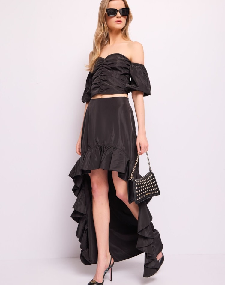 SAIA DE TAFETÁ PRETA DENNY ROSE