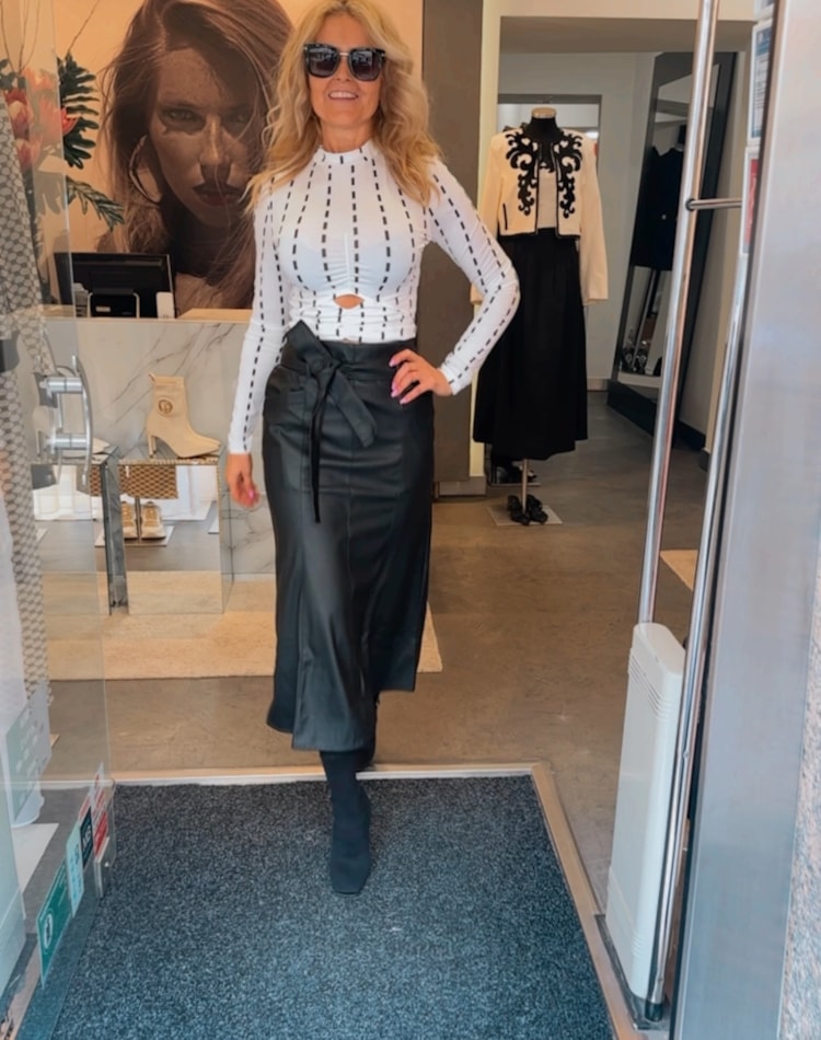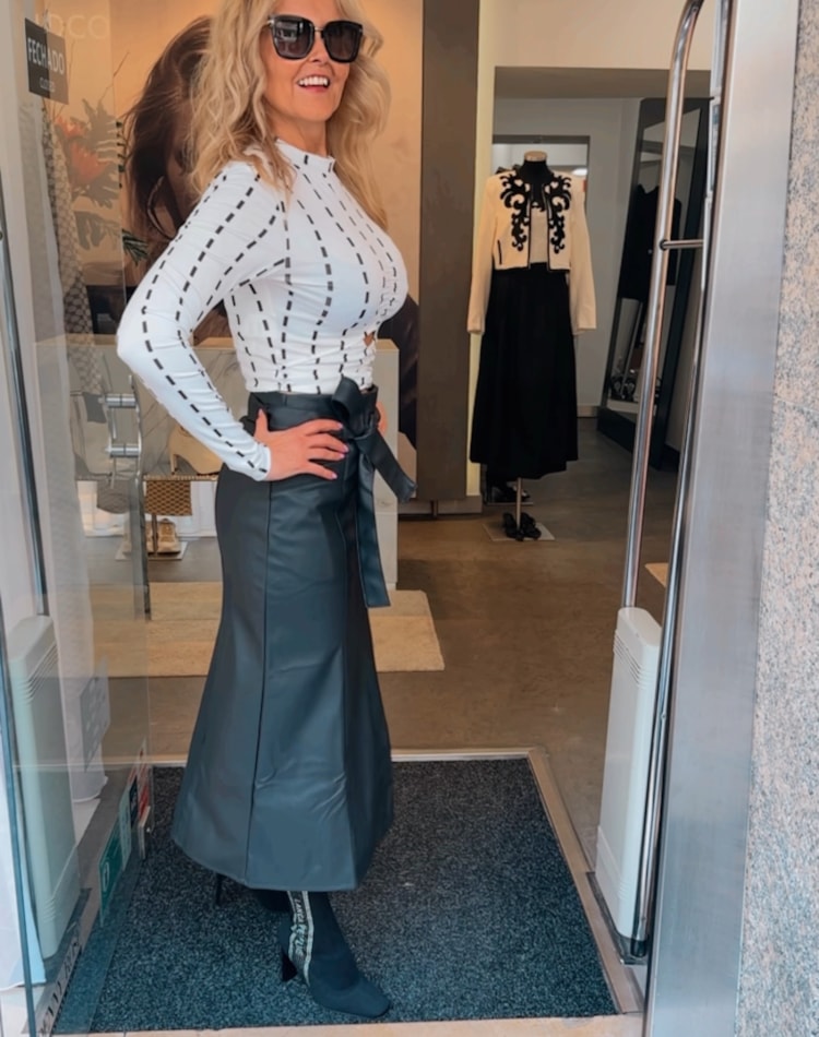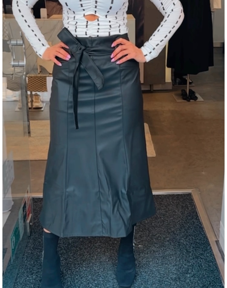 Saia ecopele preta com cinto