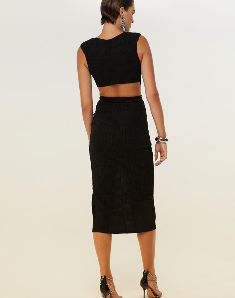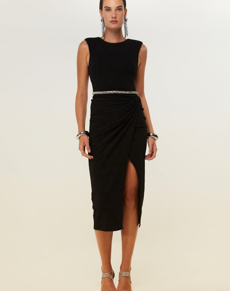 Saia Super Midi com Fenda Feminino da Dimy é perfeita para compor looks versáteis e cheios de estilo. Confeccionada em 94% poliéster e 6% elastano, possui caimento impecável e fenda charmosa. Ideal para qualquer ocasião, do trabalho ao happy hour. Adquira já a sua