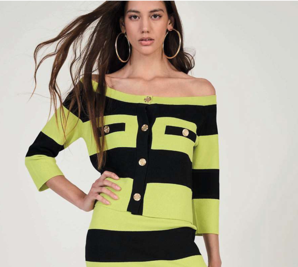 Saia malha riscas neon
