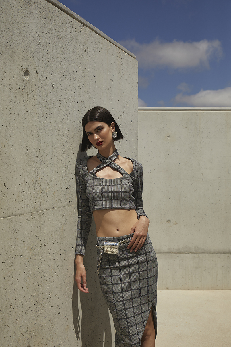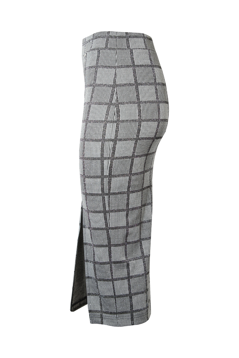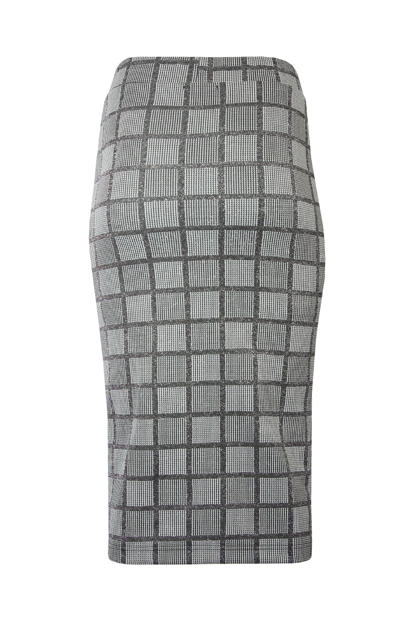 Saia justa, tamanho mídi confeccionada em tecido de malha elástica. Cós elástico.