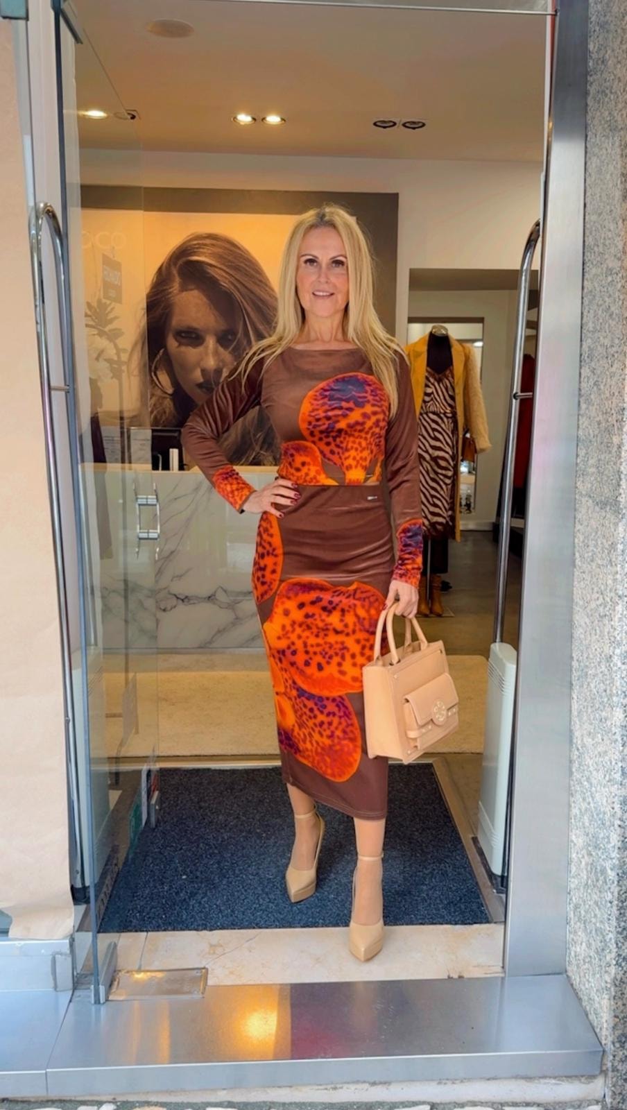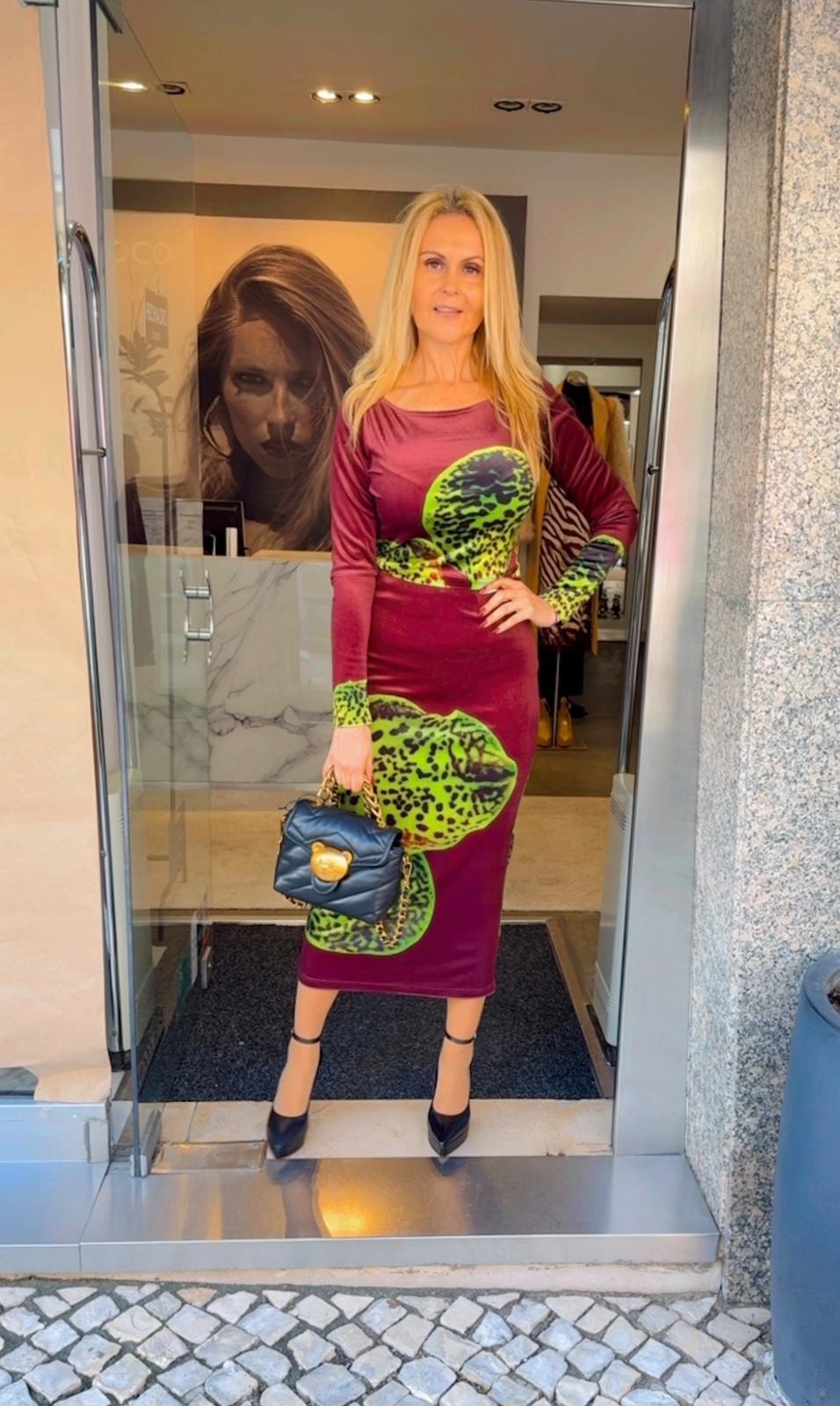 Saia midi em veludo com acabamento lustroso e estampa de orquídea em tons vibrantes. De corte direito e cintura subida e elástica, a silhueta ajustada realça a elegância natural do tecido. A estampa botânica, em contraste sobre o fundo profundo, confere dimensão artística e sofisticação contemporânea.
