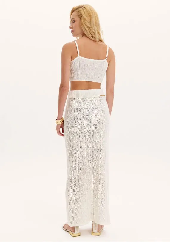 a saia reta com modelagem super midi conta com shape ajustado para destacar a silhueta. Transforme suas composições com a sofisticação do tricot