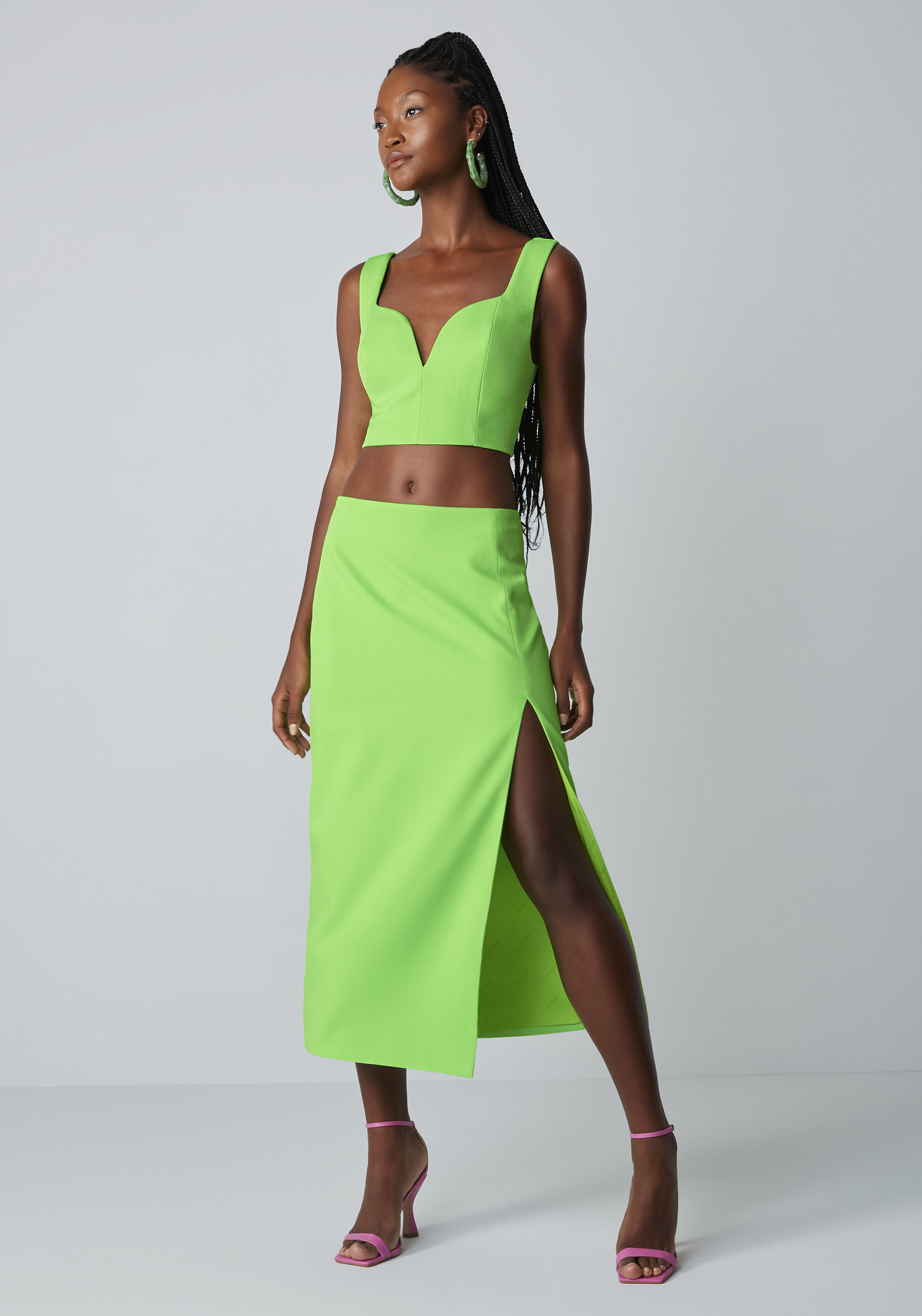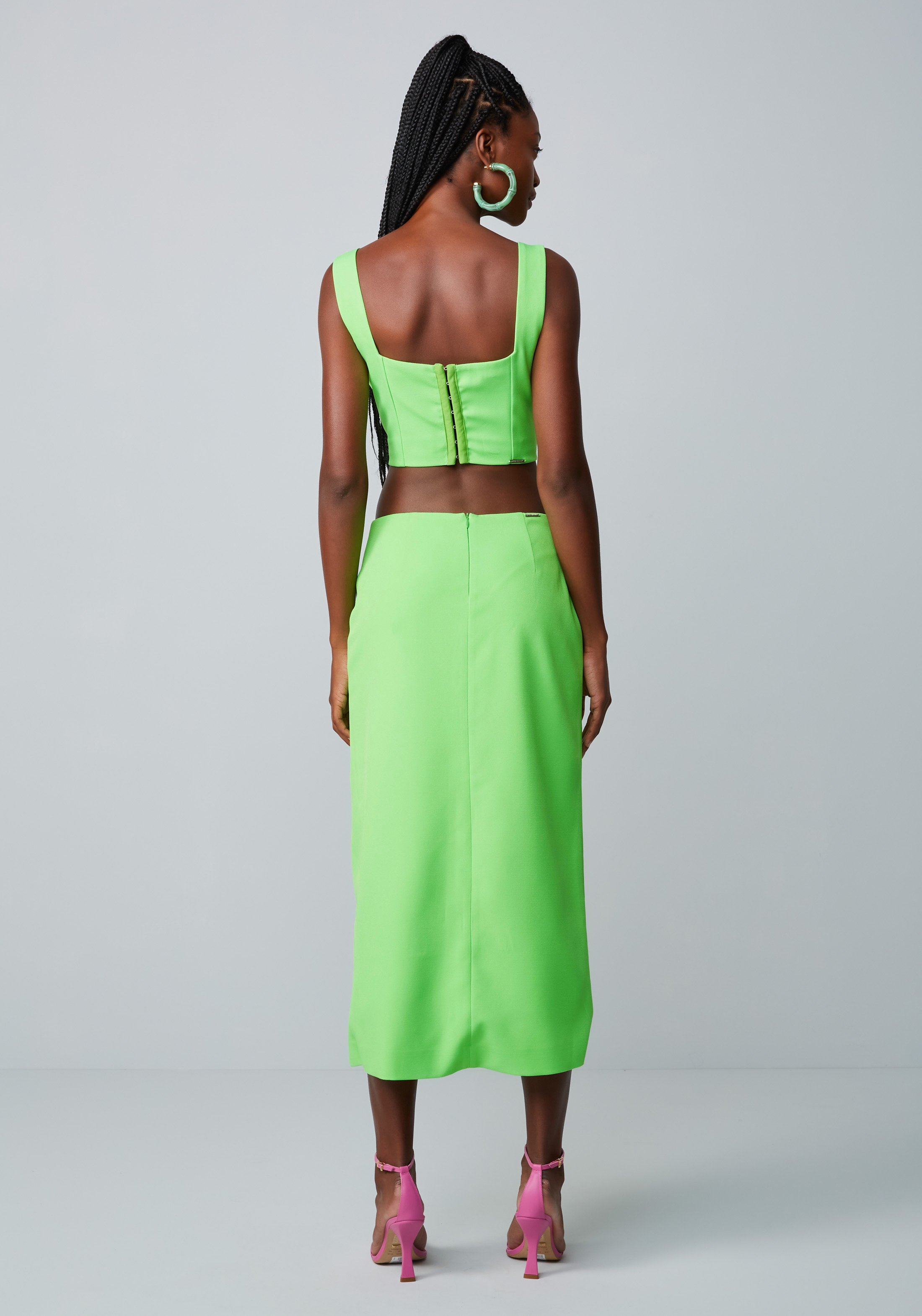 SAIA MIDI COM MAXI FENDA IDEAL PARA UM LOOK ELEGANTE A PEÇA POSSUI CINTURA ALTA. VERSÁTIL E ATEMPORAL.