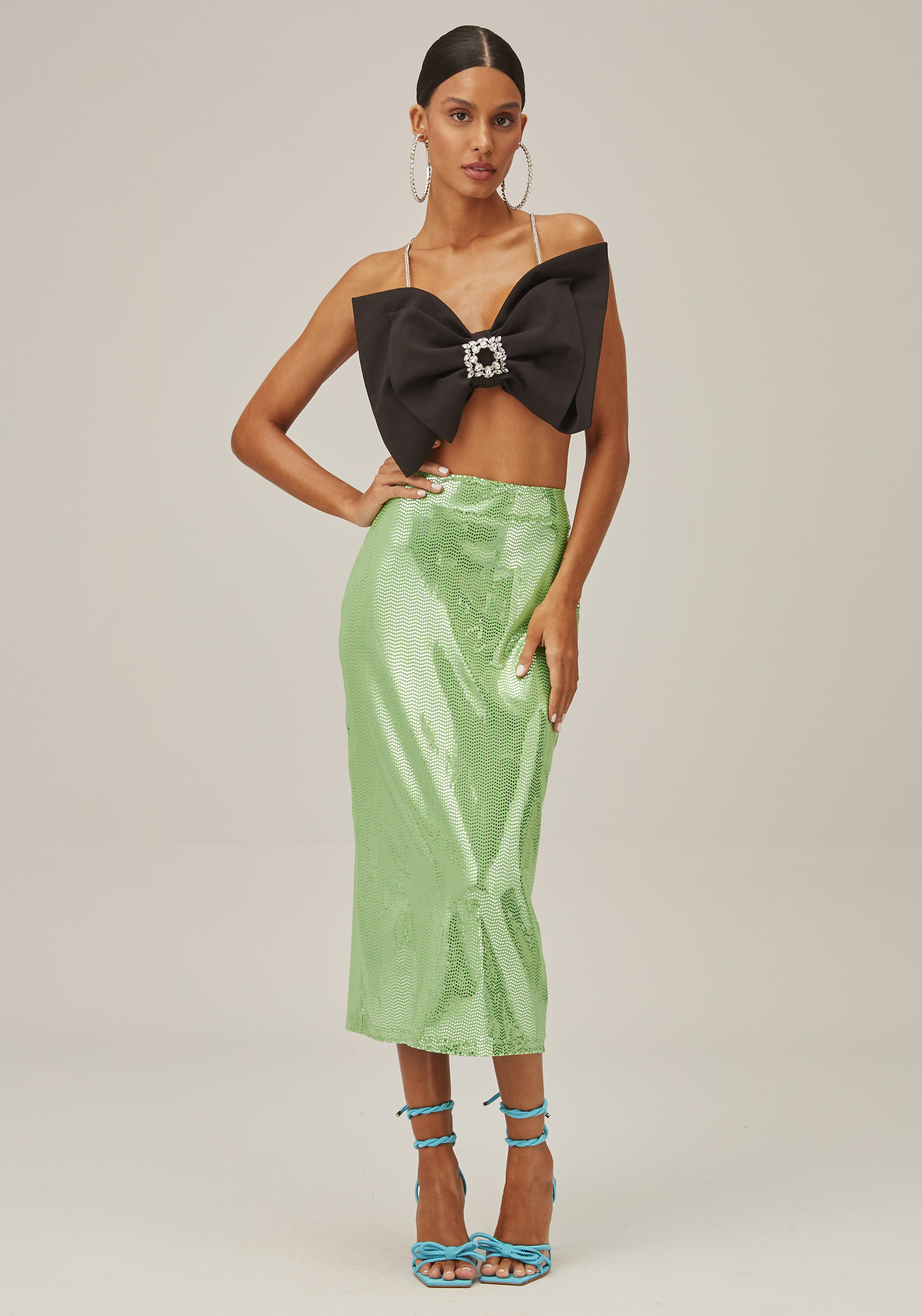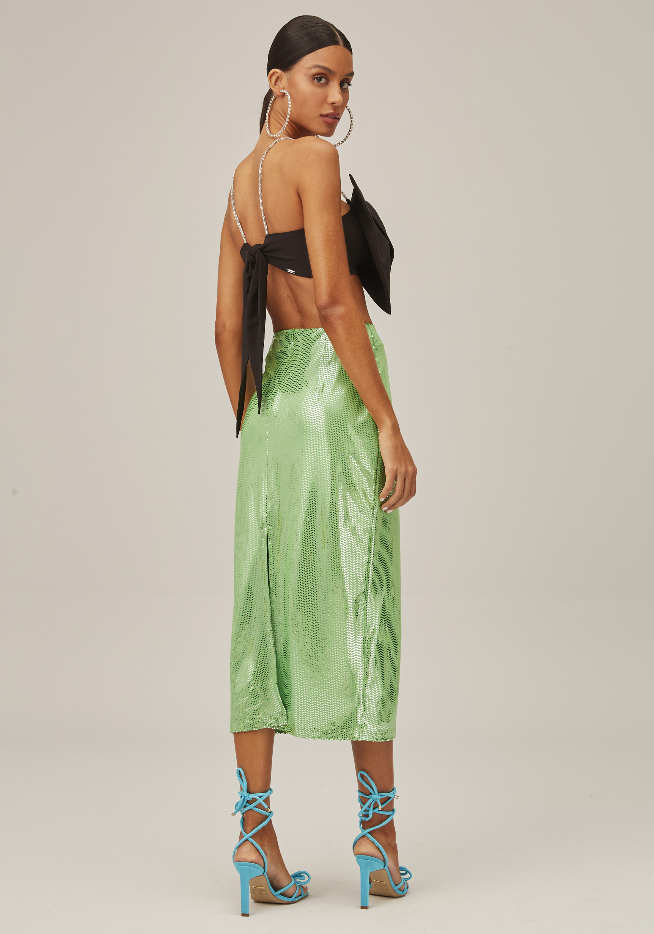A SAIA POSSUI MODELAGEM SUPER MIDI E APLICAÇÕES DE BRILHO, QUE TRAZEM UM GLOW UP ESPECIAL. EM CINTURA ALTA, A PEÇA VALORIZA A SILHUETA, APRESENTANDO FENDA POSTERIOR. UM MODELO CHEIO DE ESTILO PARA USAR PRINCIPALMENTE EM OCASIÕES NOTURNAS E EM COMBINAÇÕES COM CROPPED.