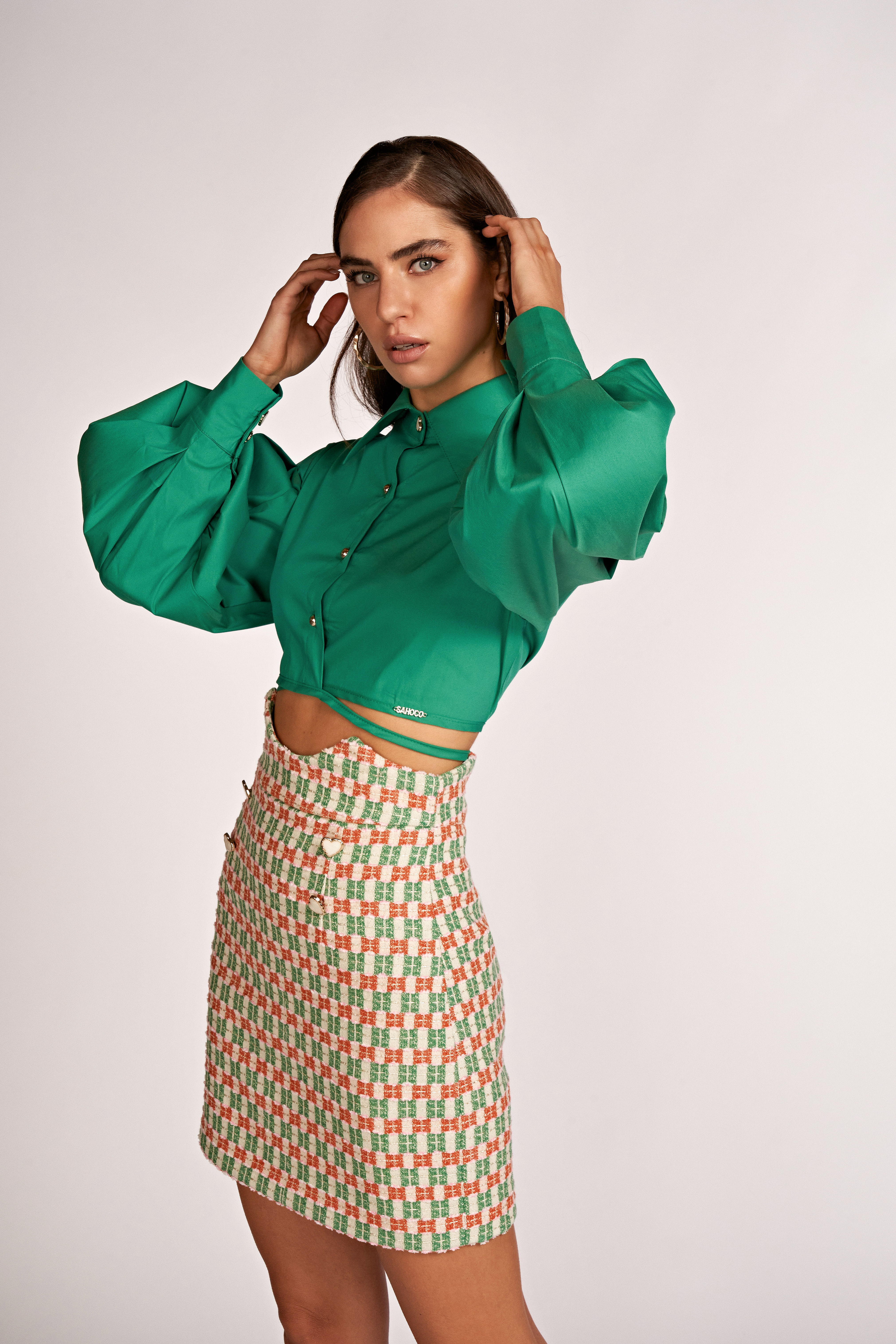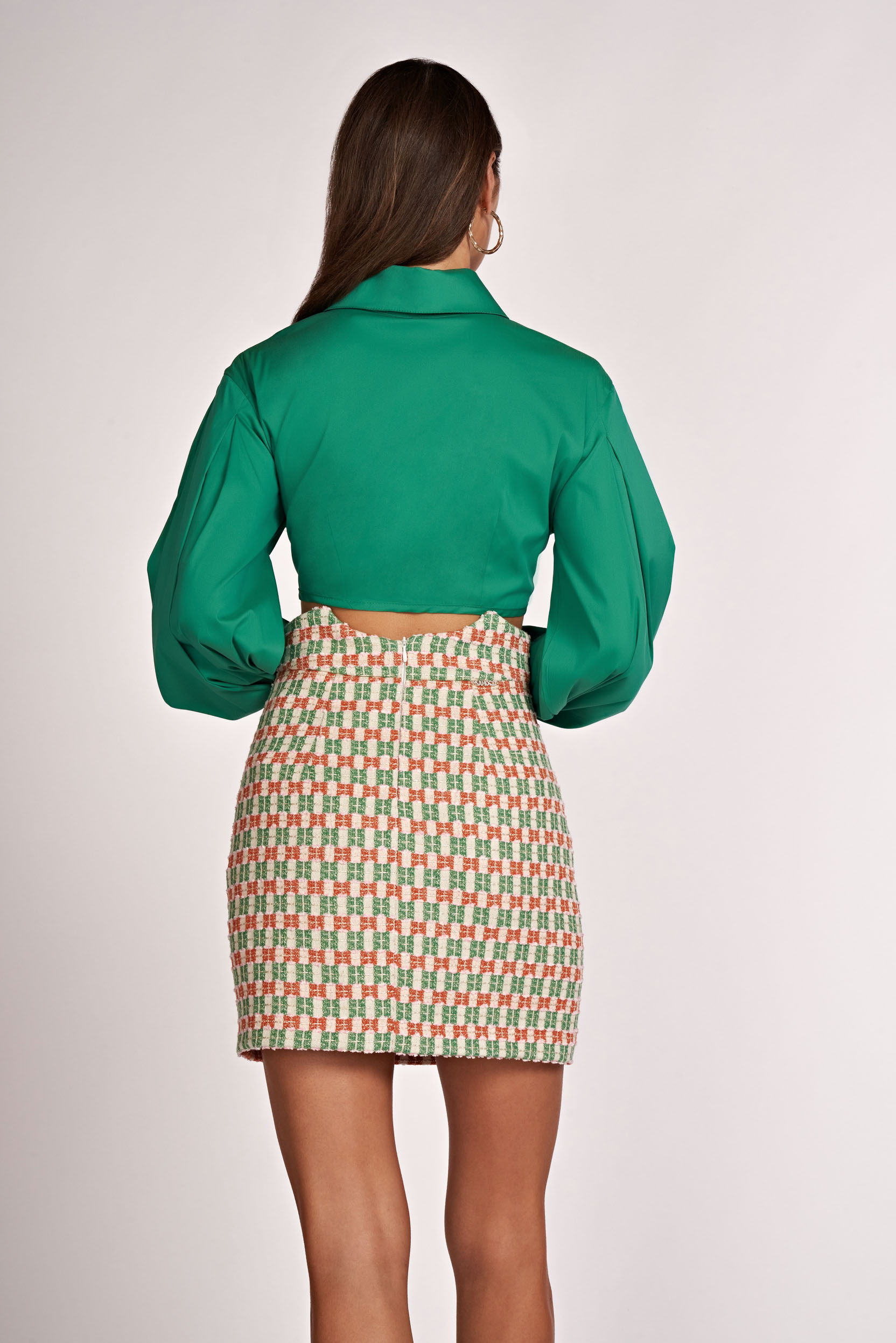 Sia Tweed curto de corte curto.