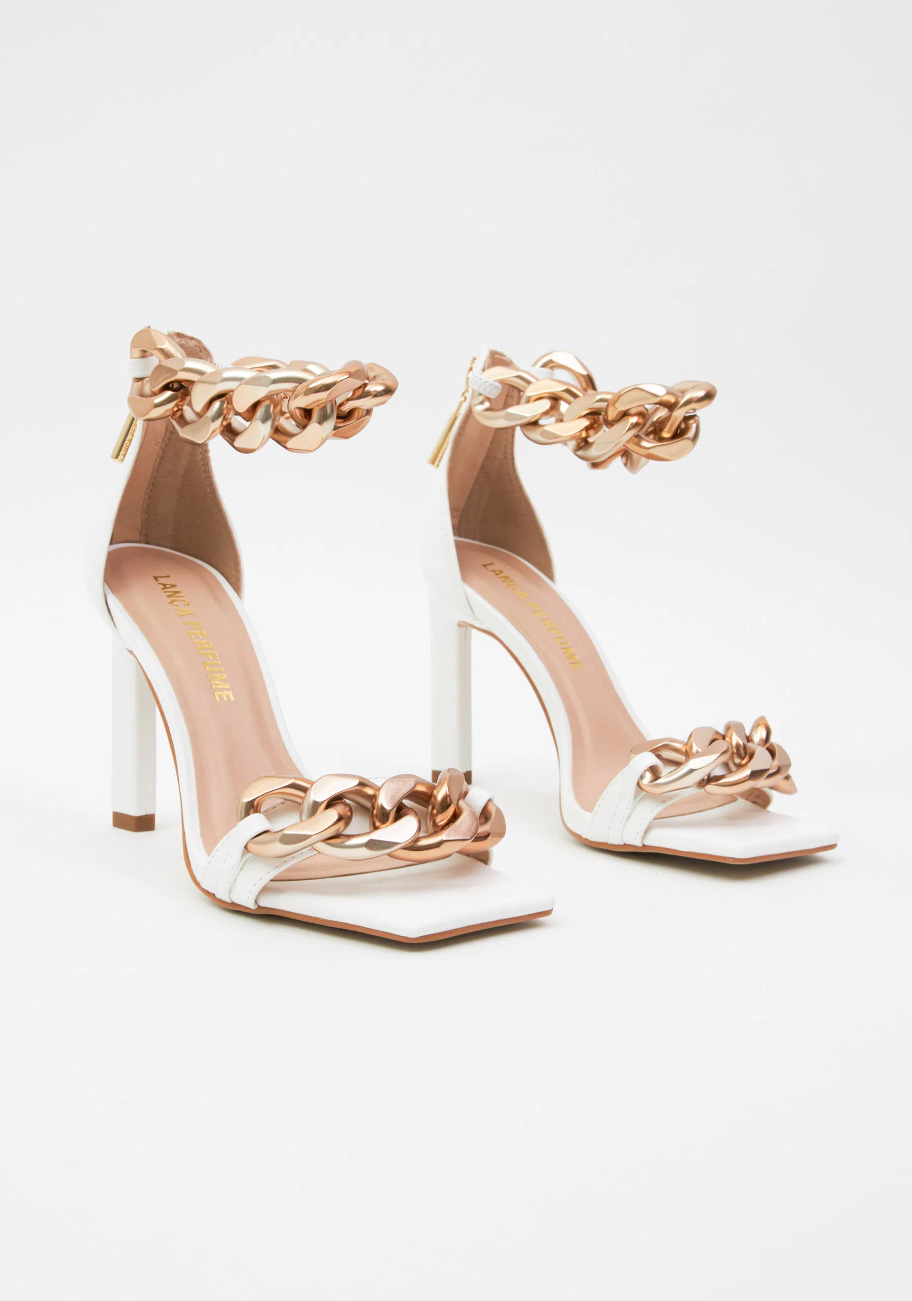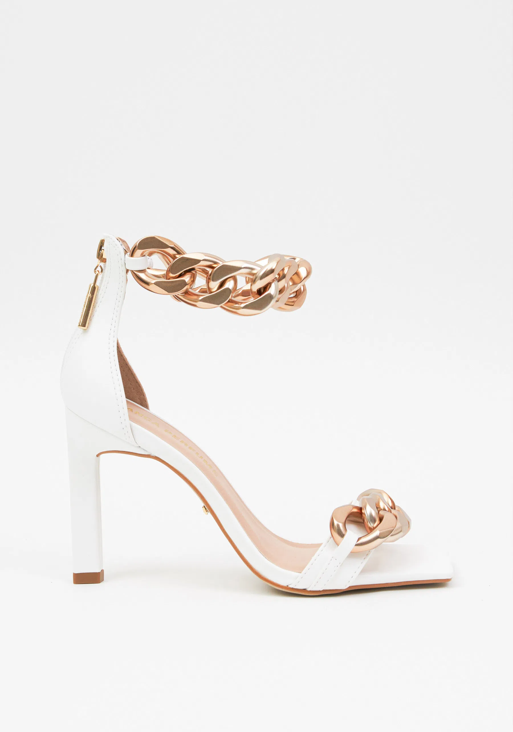 SANDALIAS BRANCAS CORRENTE DOURADA