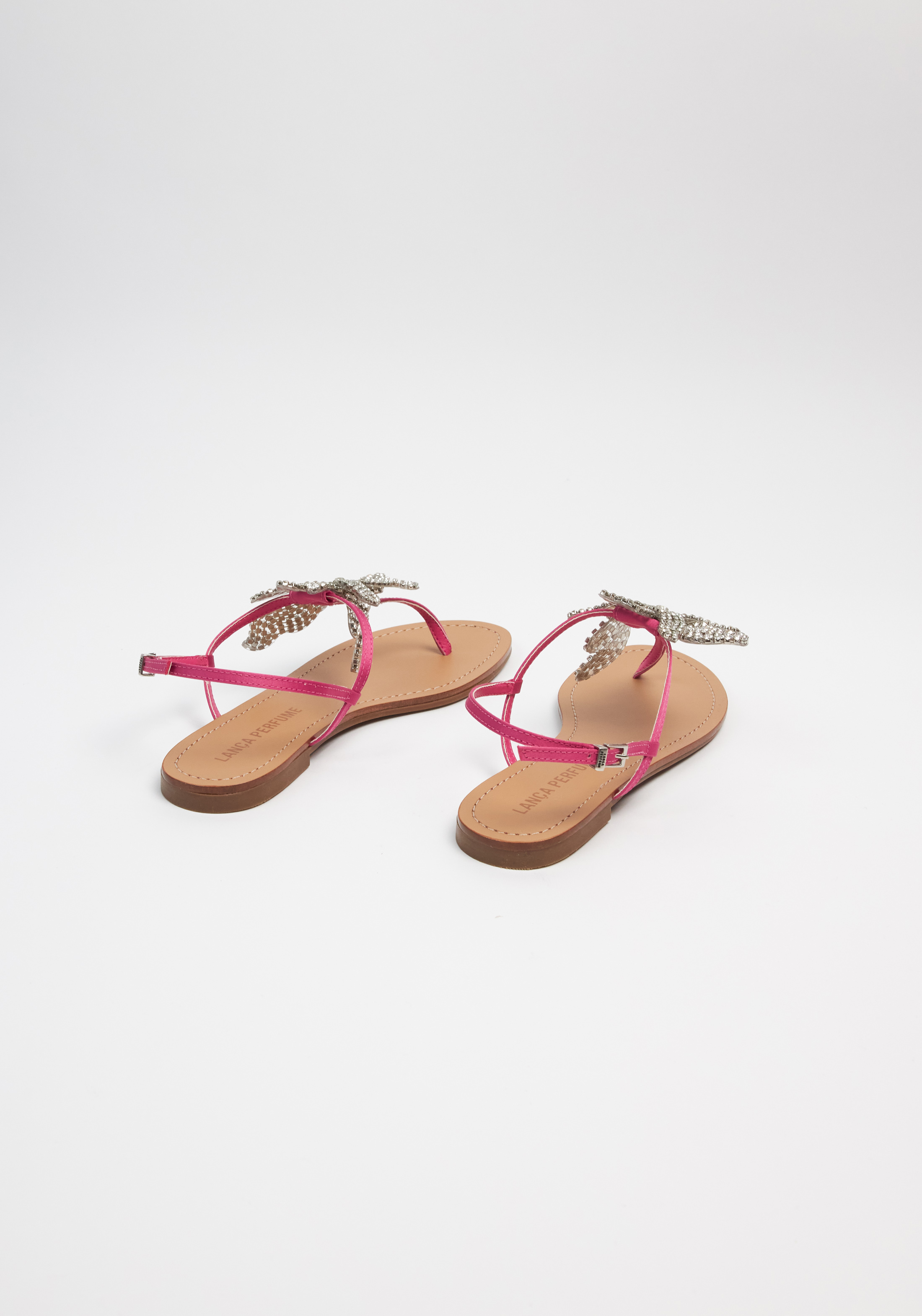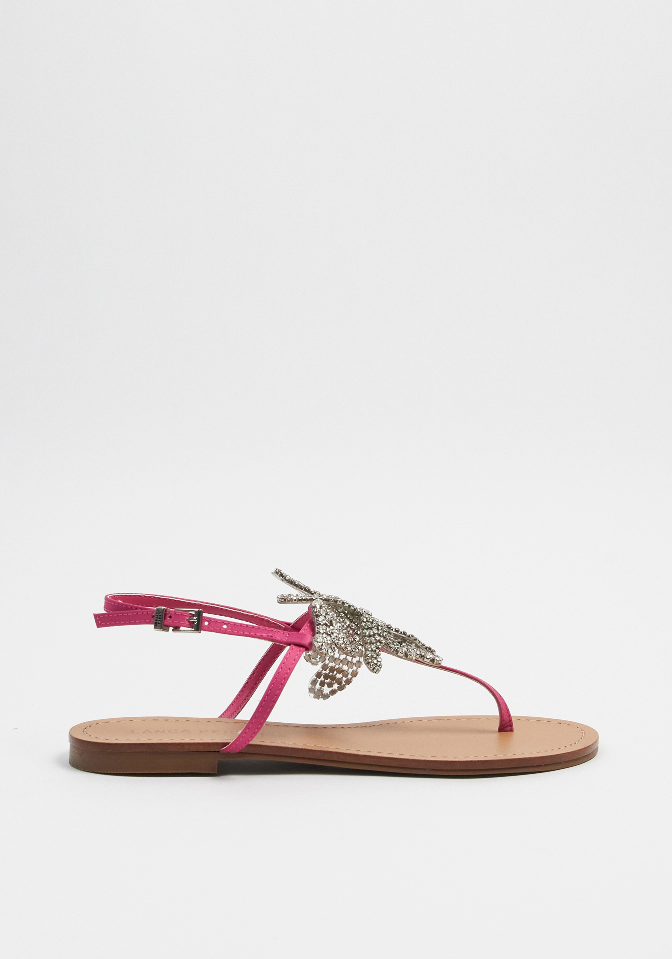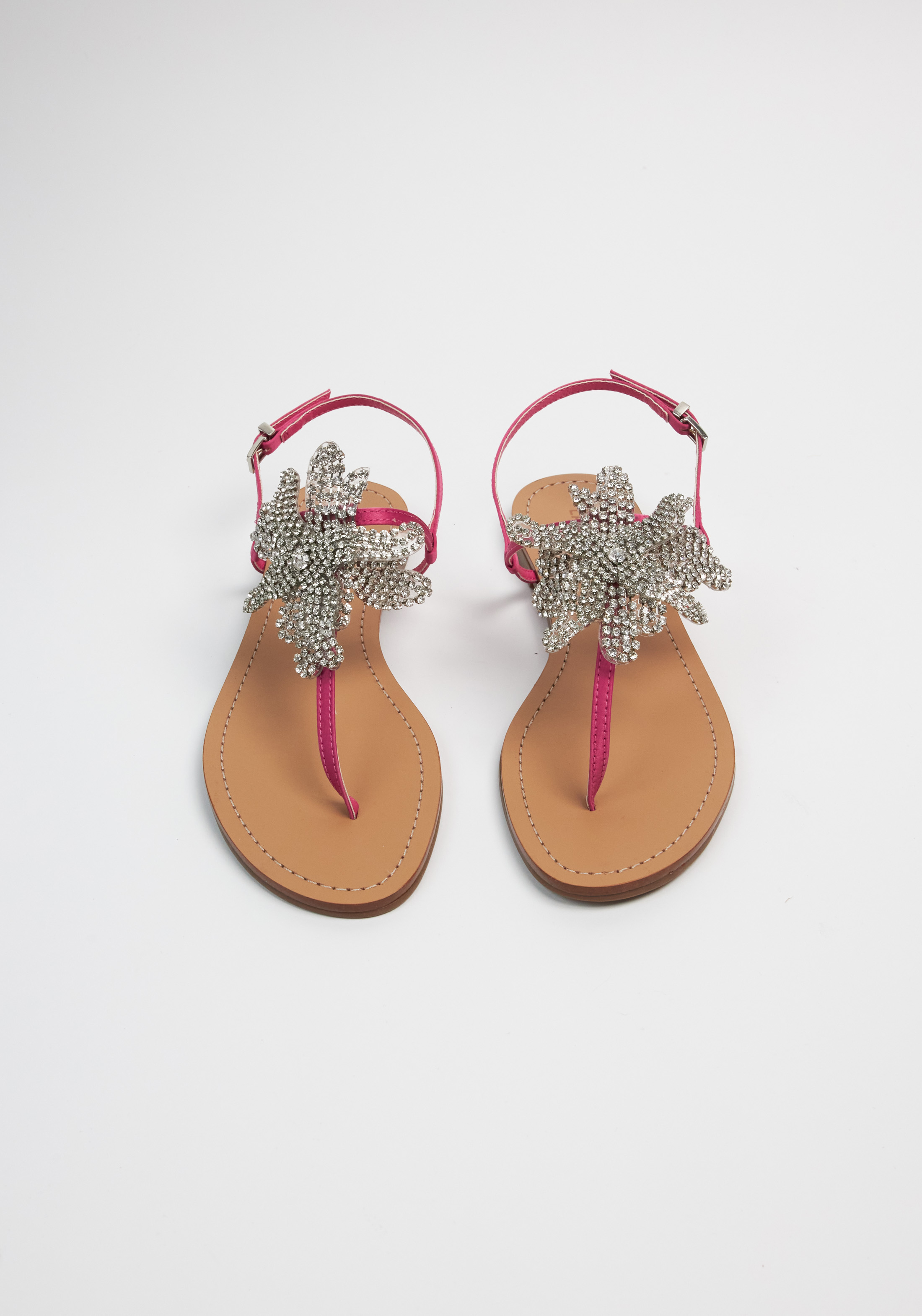 Sandálias Rasteiras Enfeite Flor Strass Rosa