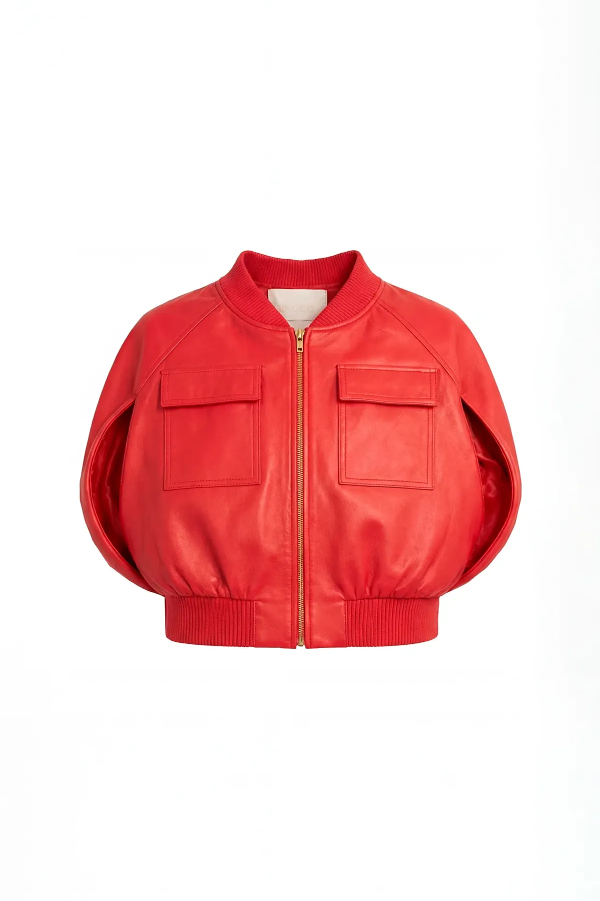 Saia midi 100% em pele de cintura subida, com recorte assimétrico e folho aplicado na bainha. Corte ajustado com acabamento de costuras aparentes para uma silhueta marcada.