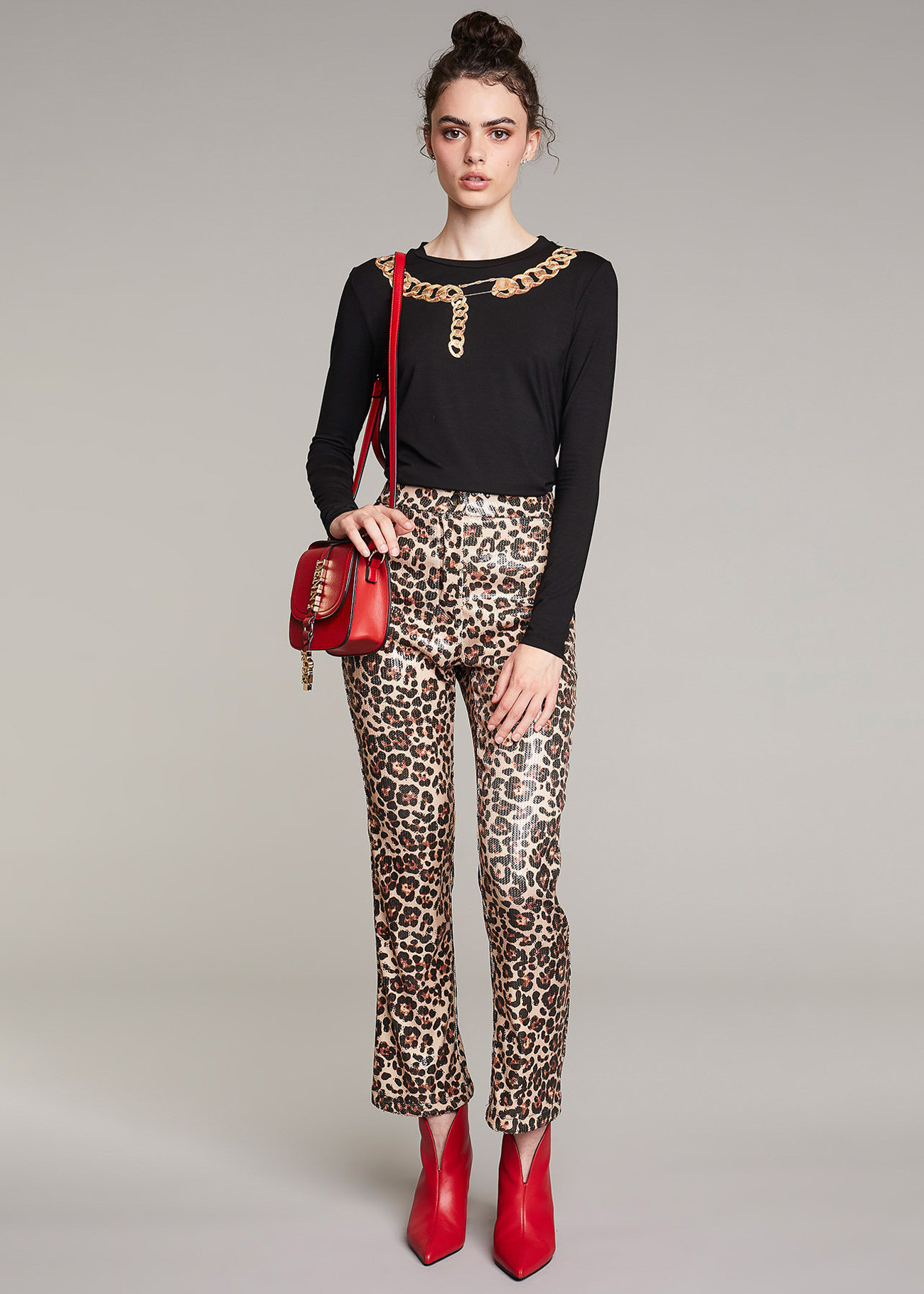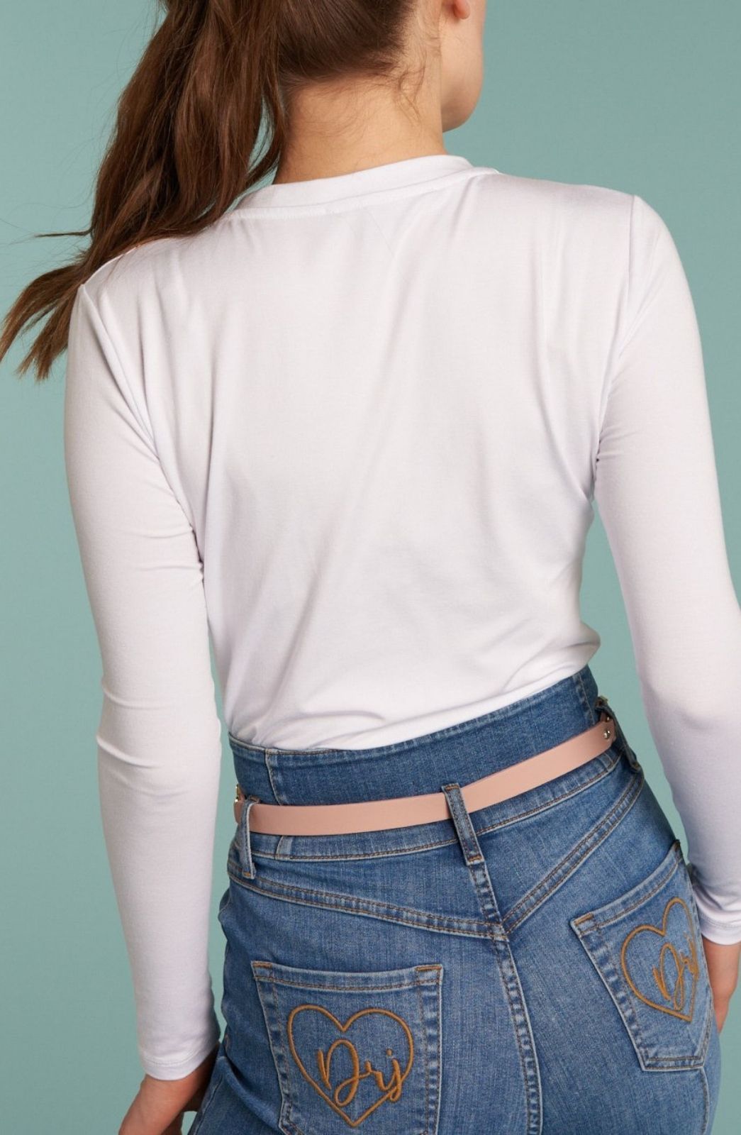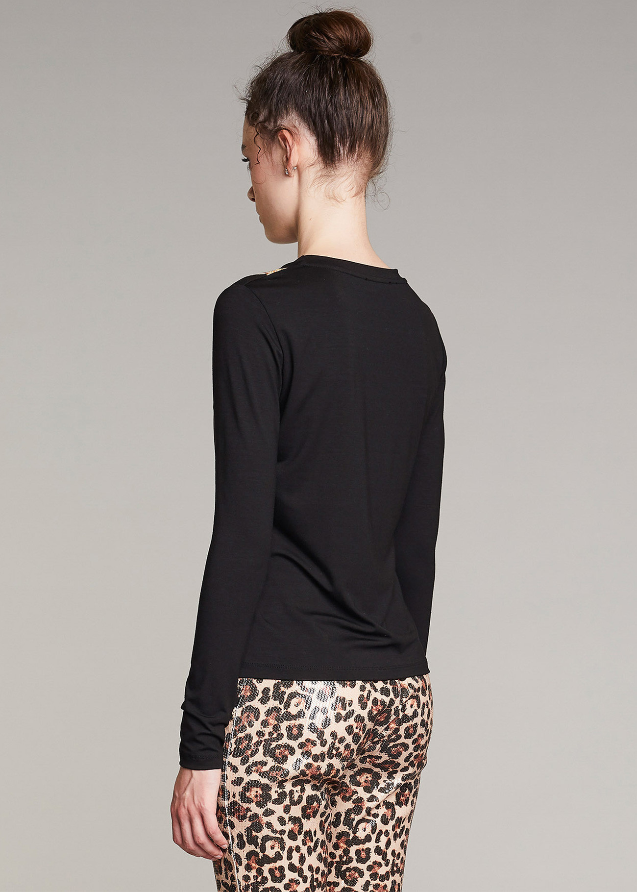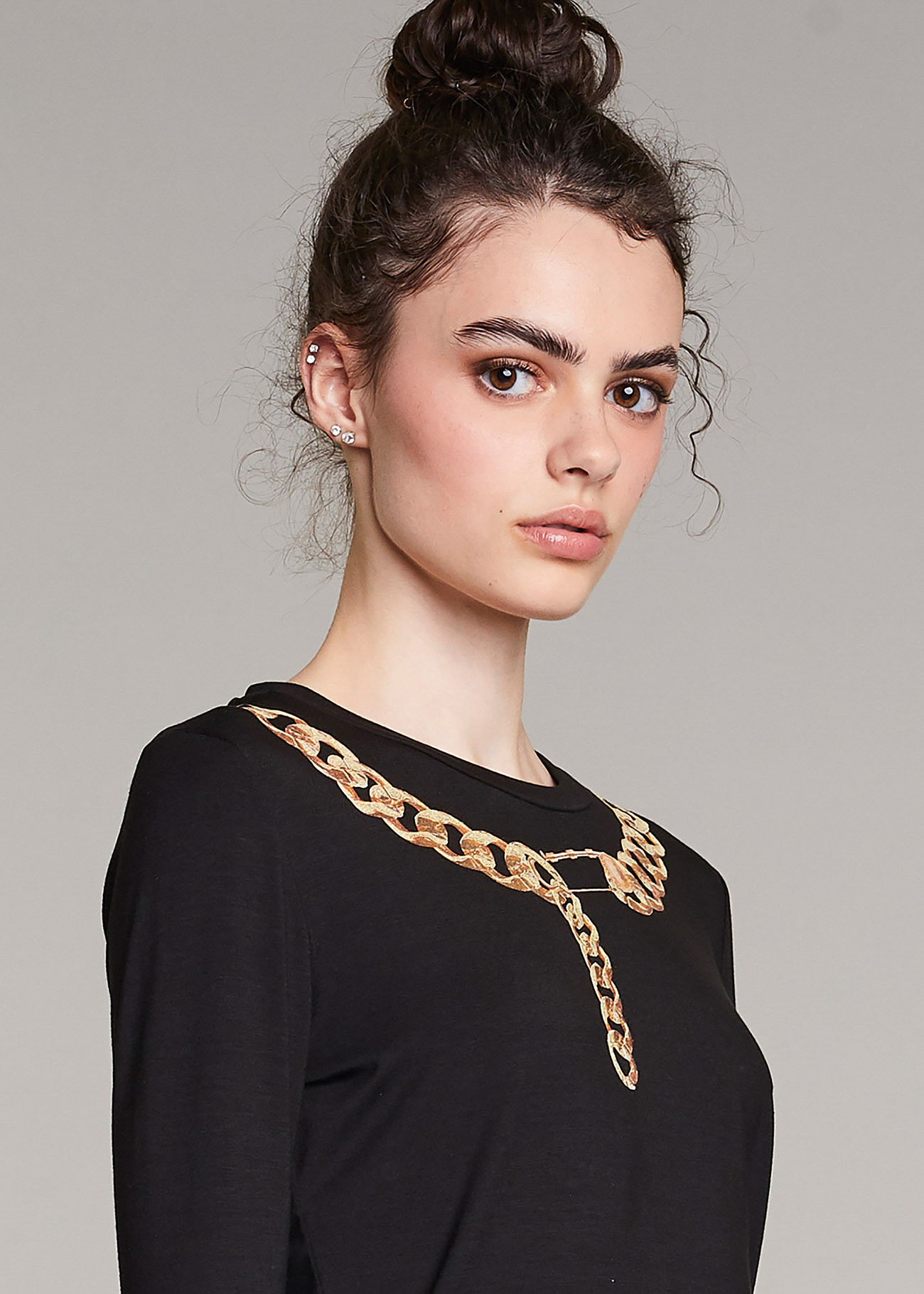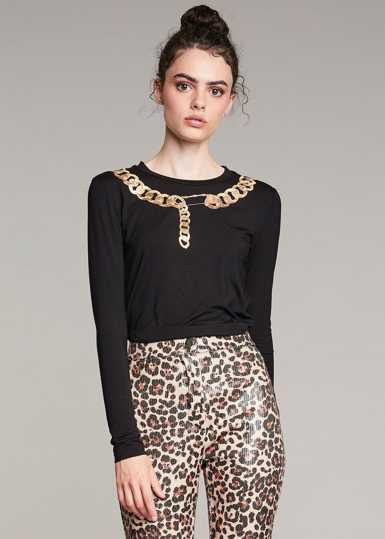 T´Shirt manga comprida decote redondo e estampa de uma corrente
