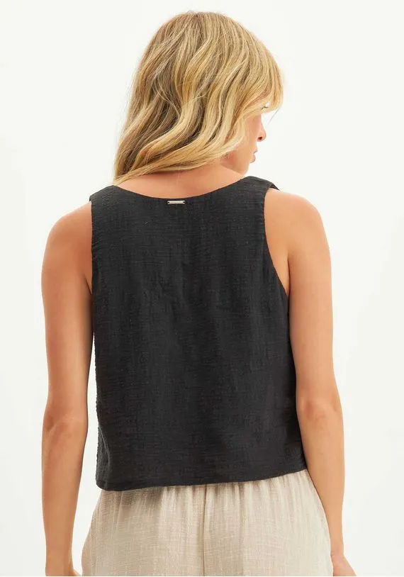 Top em modelagem cropped, com shape amplo e decote V. O diferencial da peça está nas aplicações que dão um toque de sofisticação! Utilize com saias longas e acerte no estilo