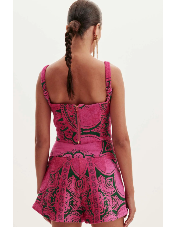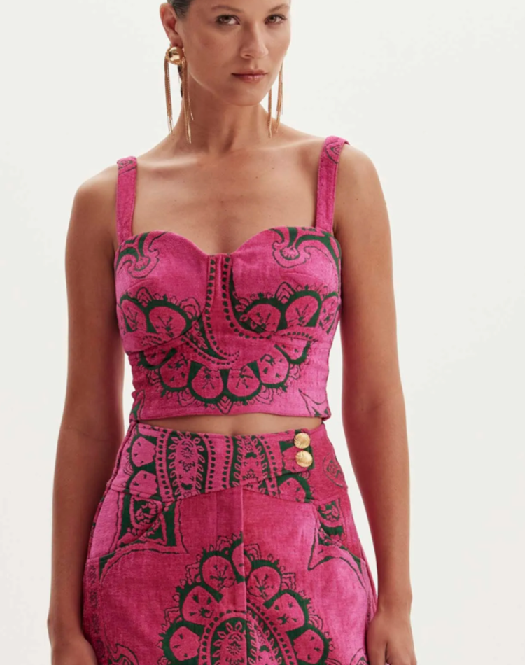 top estampado feminino possui modelagem cropped, alças confortáveis e caimento ajustado. Prático e sofisticado, é a escolha ideal para garantir elegância e vivacidade às produções da estação. Combine com saia e eleve seu estilo!