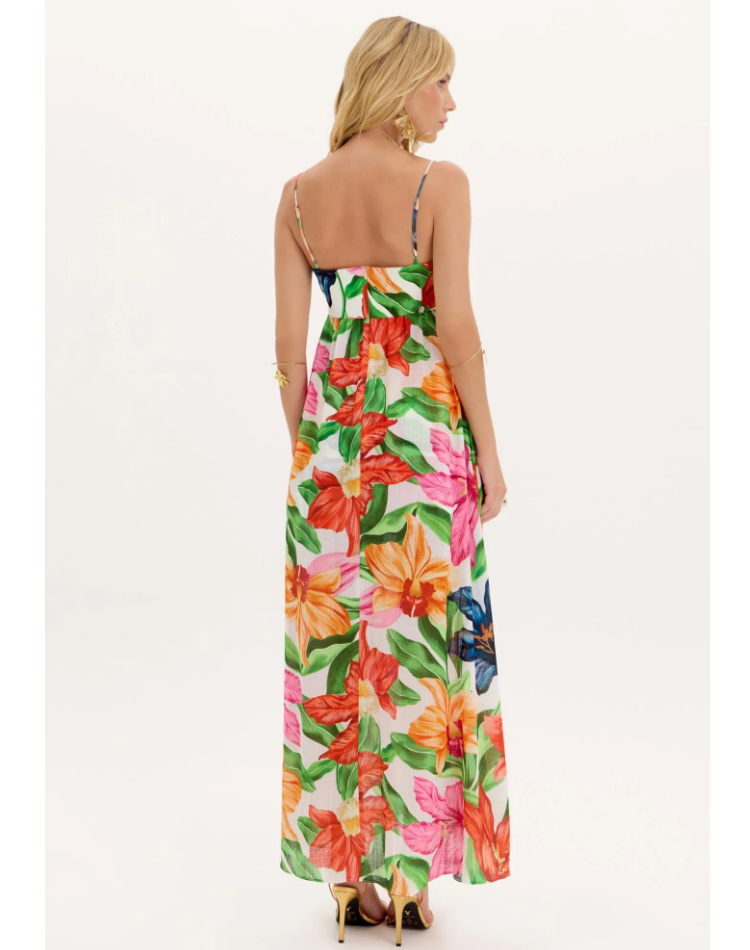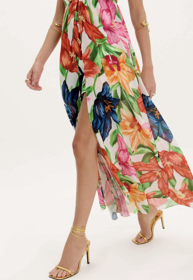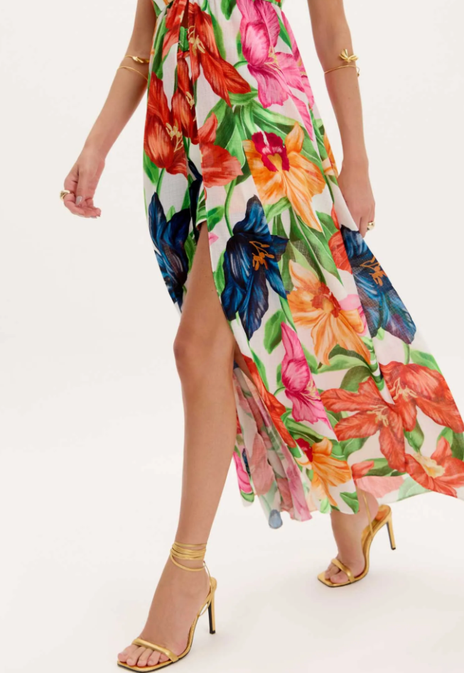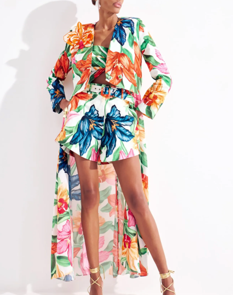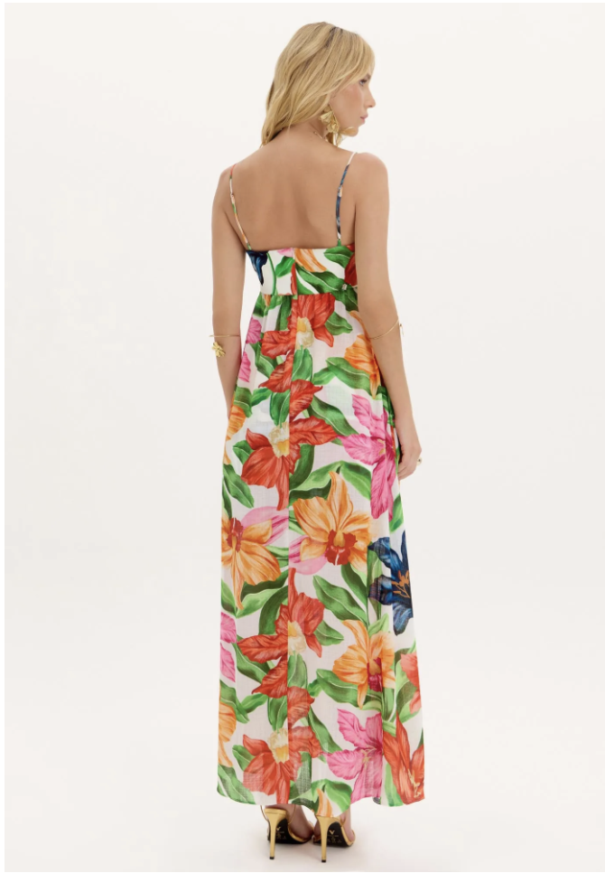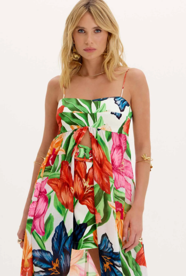 Top alongada estampada é ideal para um visual elegante e primaveril. Com fenda frontal, alças delicadas e fechamento por fecho oferece um caimento impecável. Além da estampa floral que adiciona estilo e personalidade.
