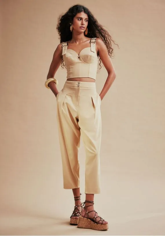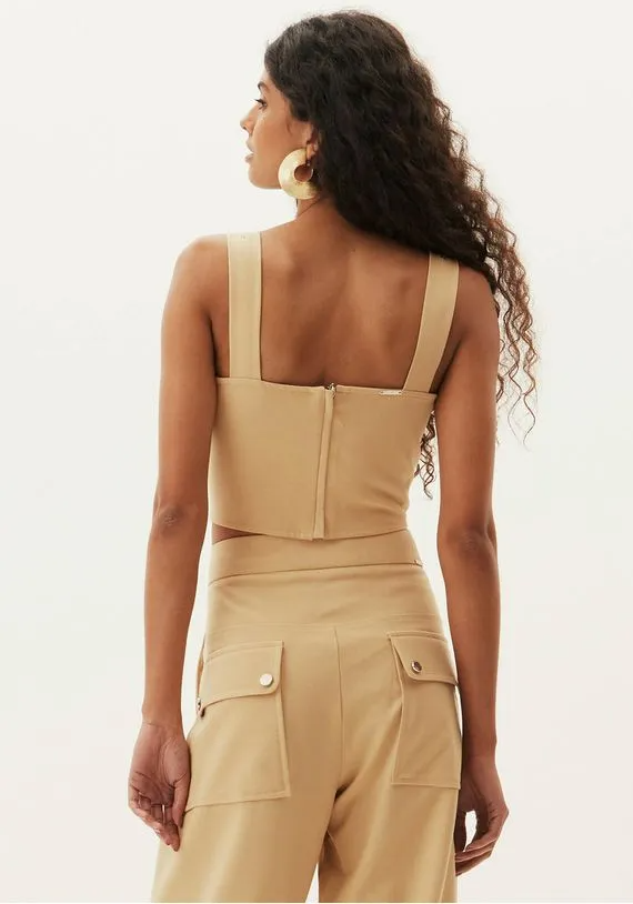 Top em modelagem cropped com detalhes em fivela. atemporal, pode ser utilizado como peça única ou com sobreposições. Aposte!
