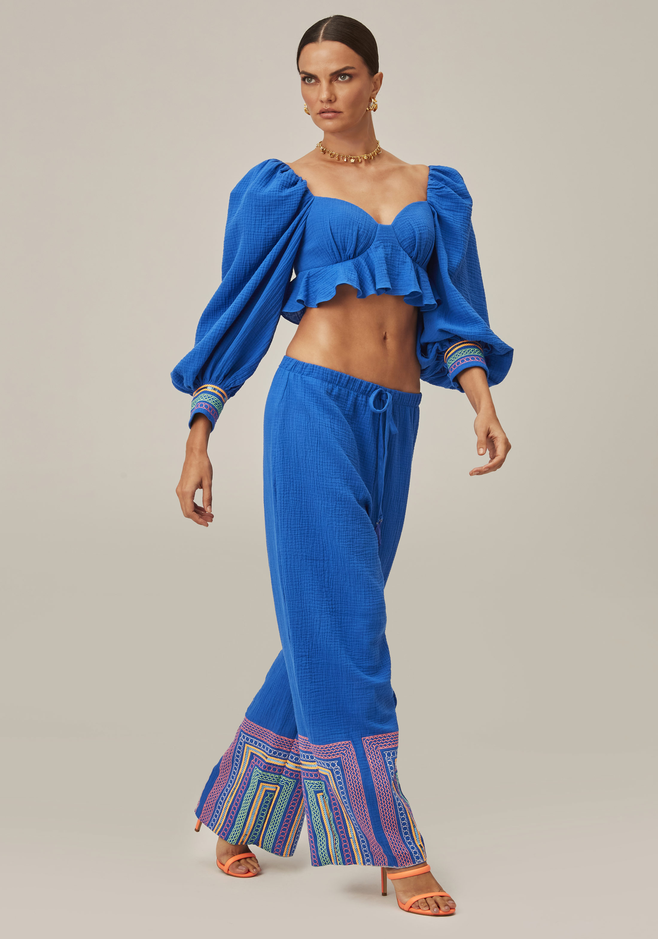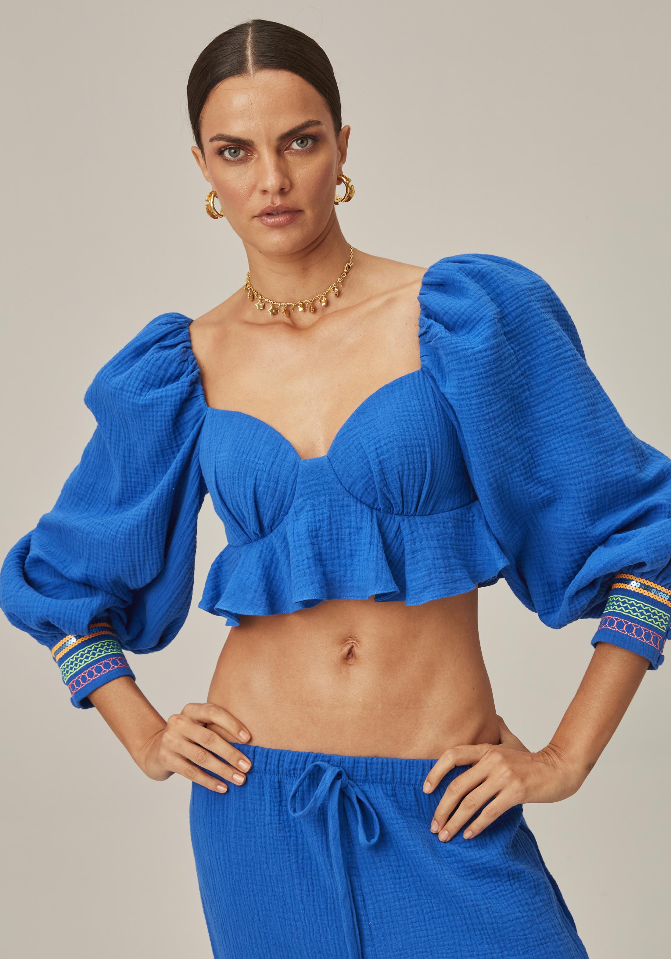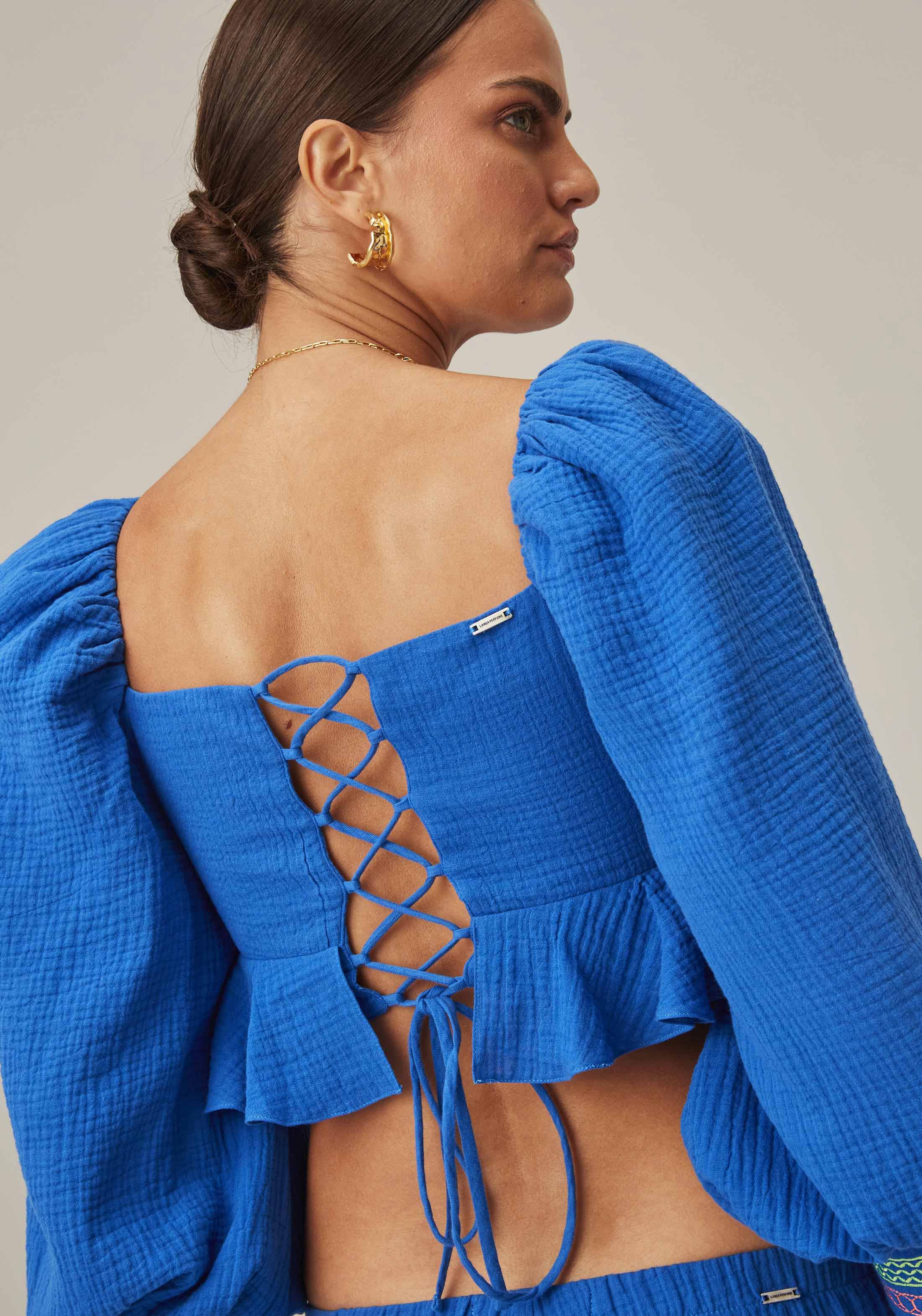top DE MANGA LONGA APRESENTA MODELAGEM CROPPED SUPER ESTILOSA. O ACABAMENTO COM BABADOS TRAZ LEVEZA E PERSONALIDADE PARA AS PRODUÇÕES. AS AMARRAÇÕES NAS COSTAS E O BORDADO NA MANGA FINALIZAM BEM A PEÇA, LEVANDO MAIS ATITUDE E ELEGÂNCIA.