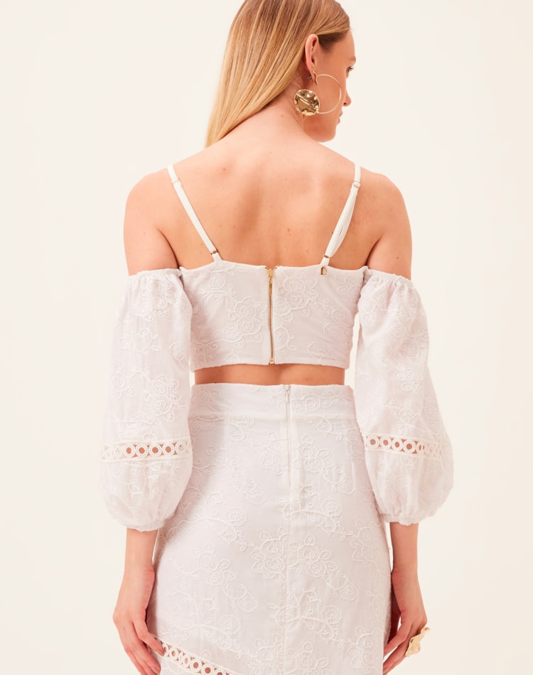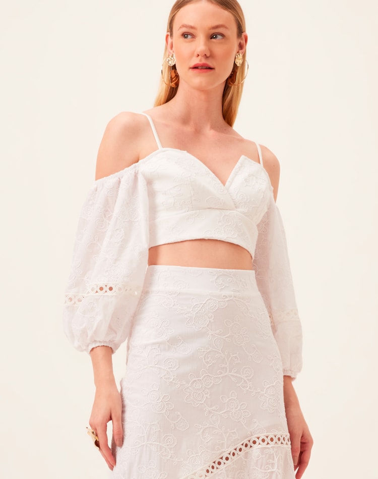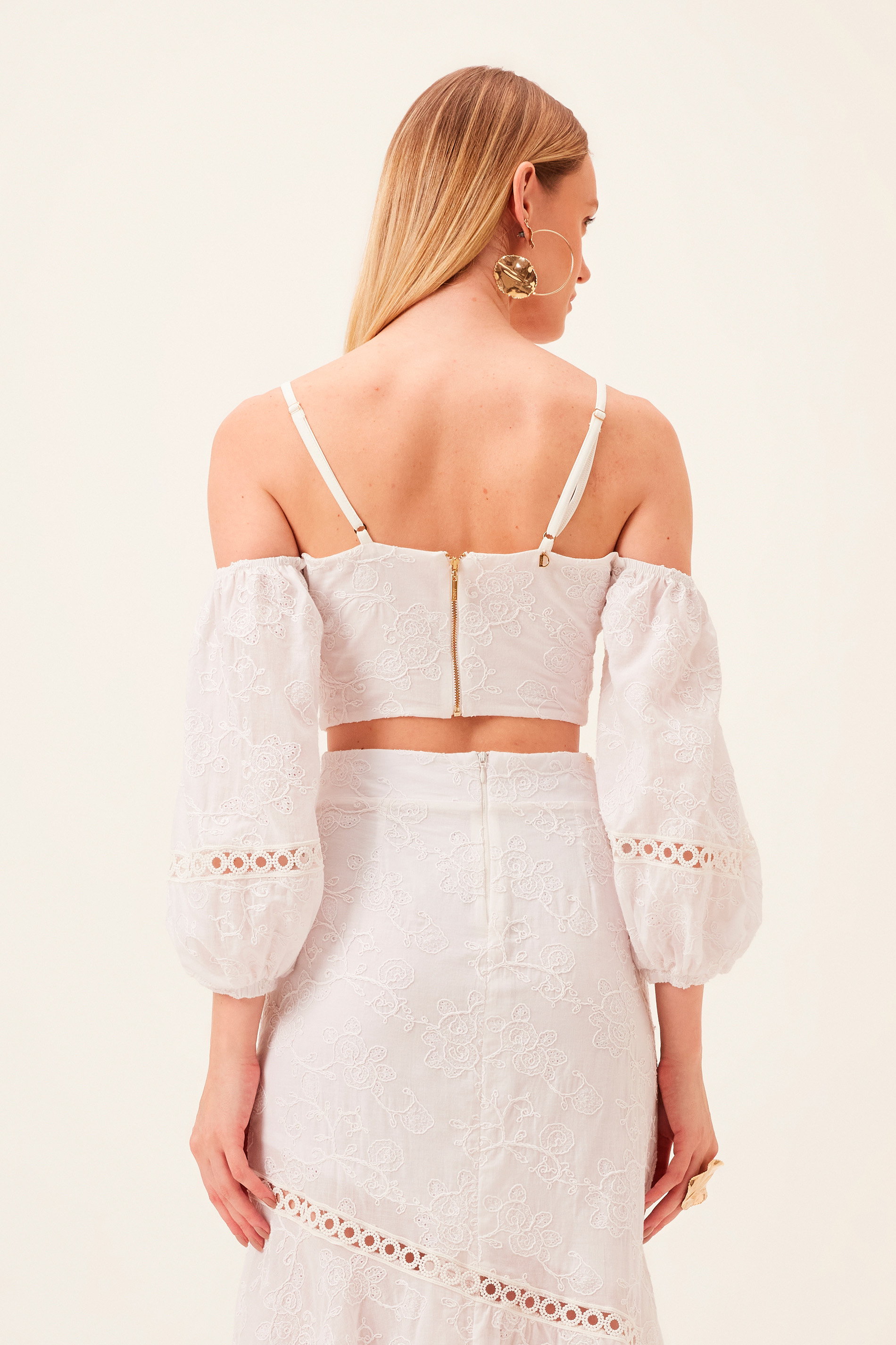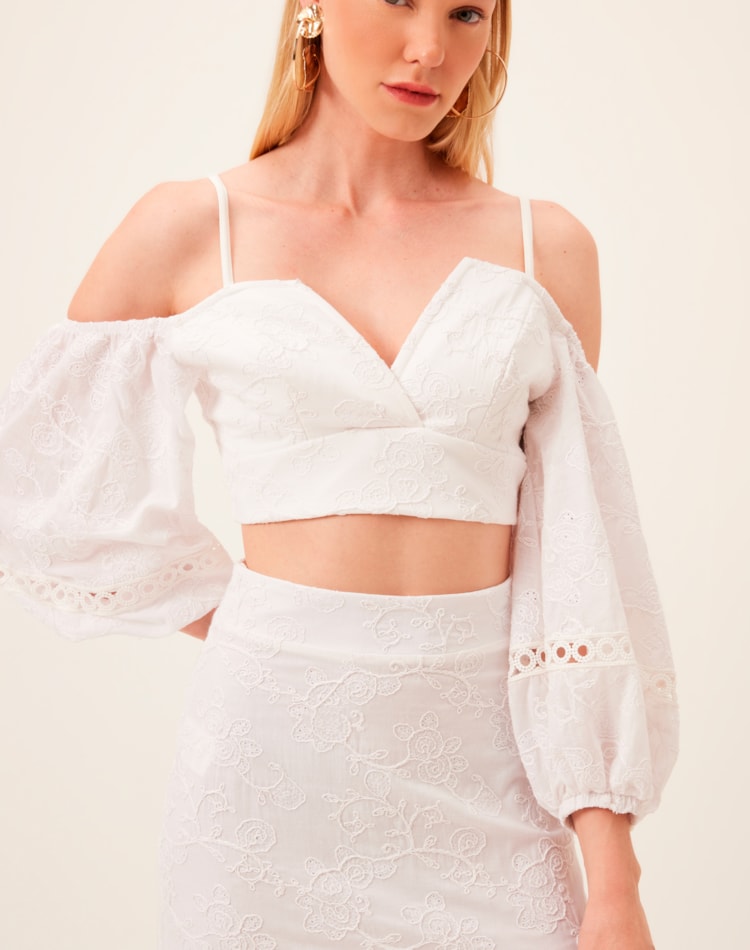TOP cropped exclusiva apresenta detalhes delicados, como uma barbatana no busto, garantindo estilo e conforto. compre agora e descubra a perfeição em forma de moda.