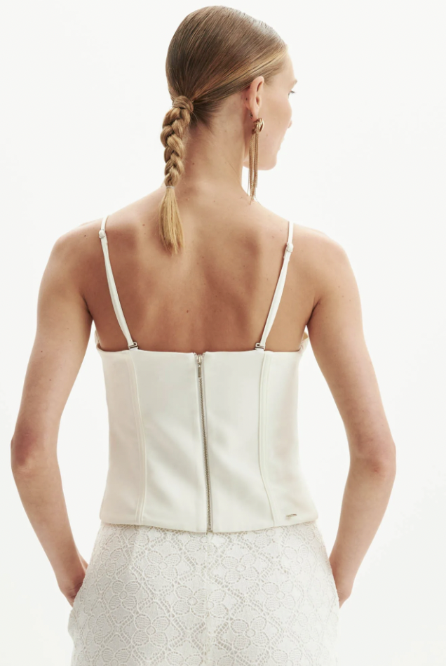 Top corset feminina possui modelagem tomara que caia, alças removíveis e fechamento posterior por zíper. Versátil e elegante, conta com delicados detalhes rendados que garantem um toque extra de charme e sofisticação. Inspire-se