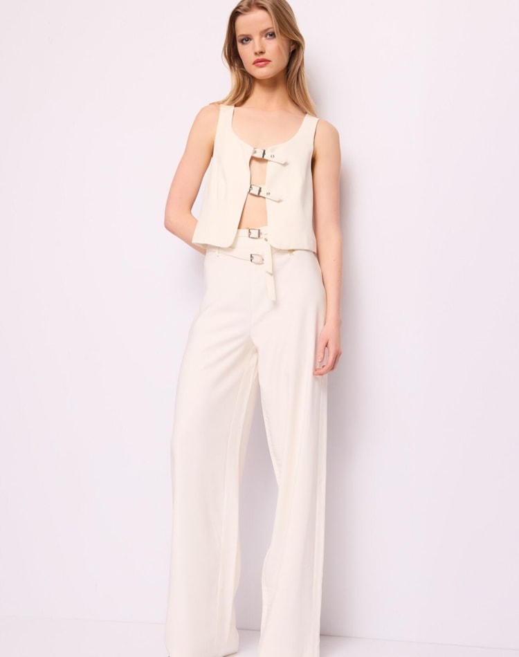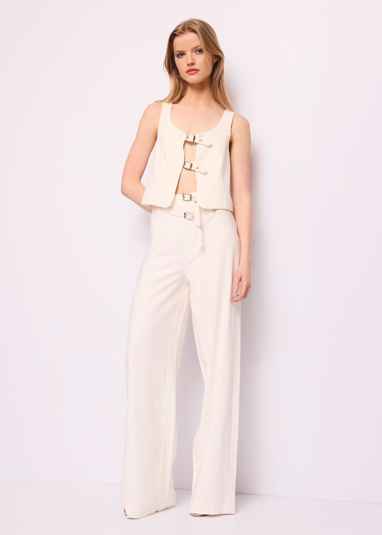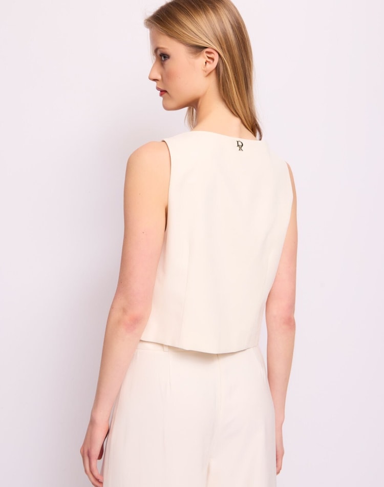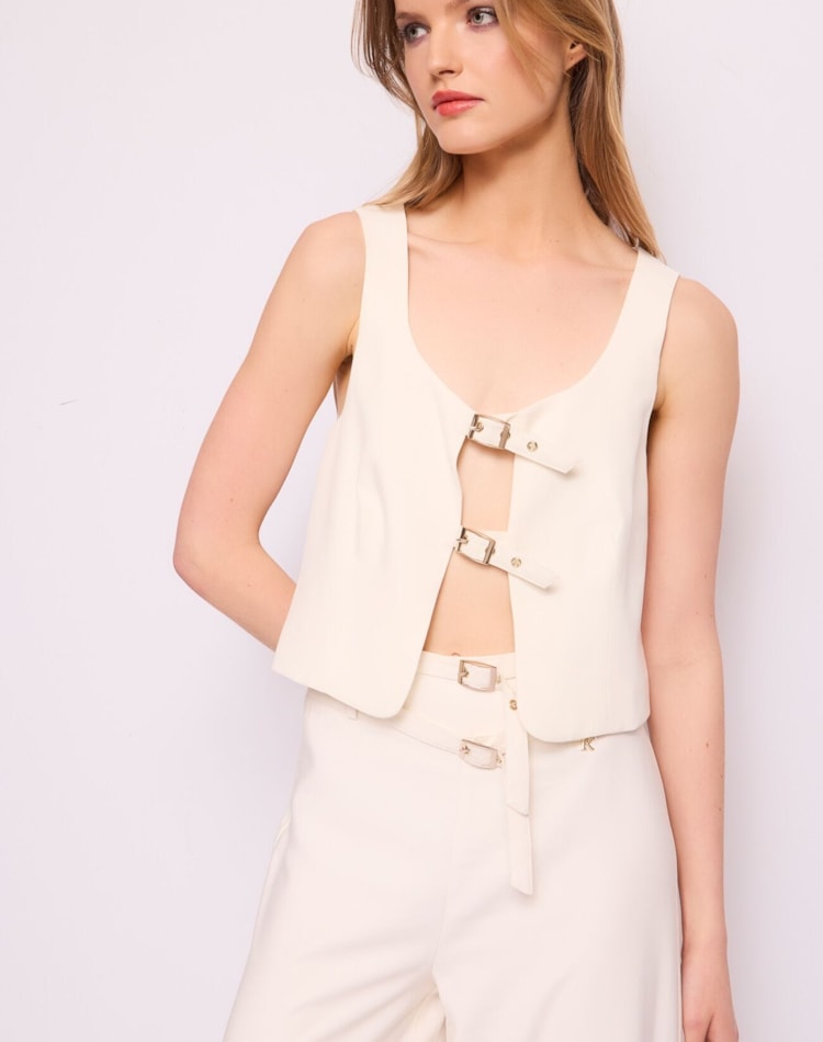 Top / colete de gabardina en mezcla de viscosa Escopo redondo Correias con hebillas ajustáveis Charm DR de metal en la parte trasera Forro interior