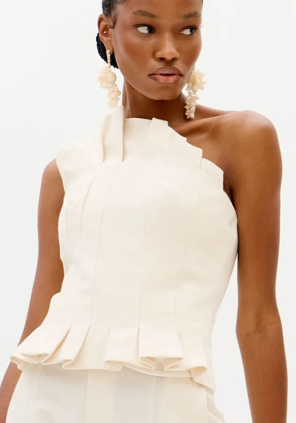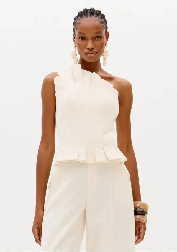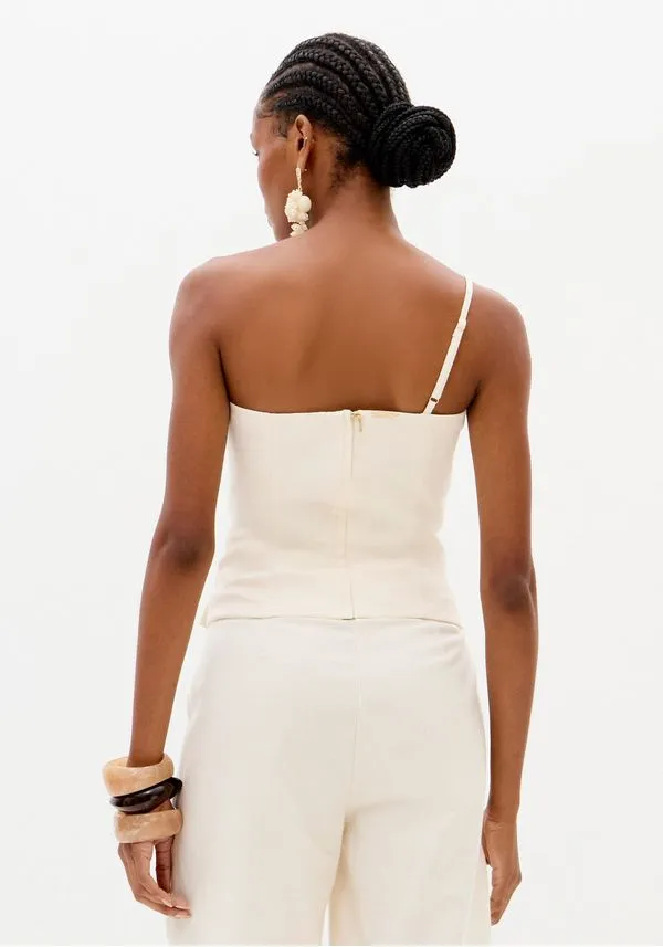 Blusa corset feita em tecido plano encorpado que garante caimento justo ao corpo. A modelagem assimétrica valoriza a silhueta e conta com alça única regulável, além de fechamento posterior por zíper. Uma aposta marcante para compor produções modernas!