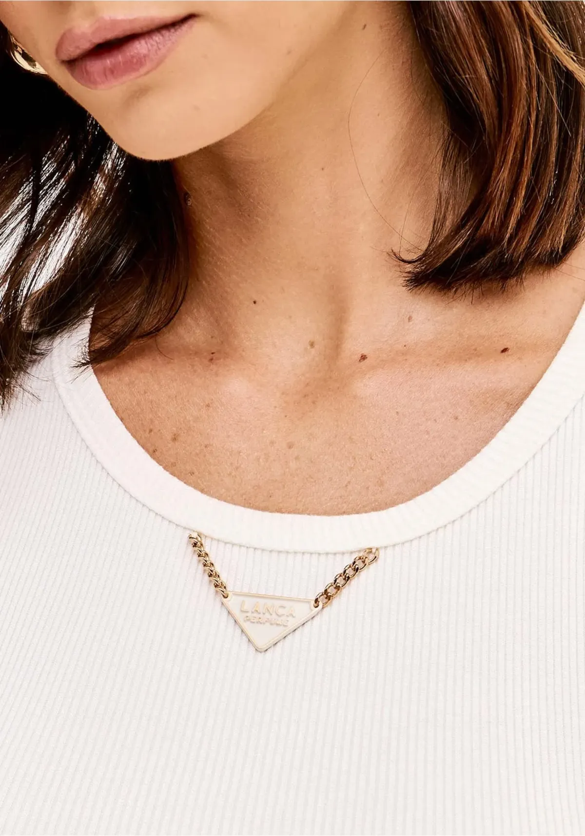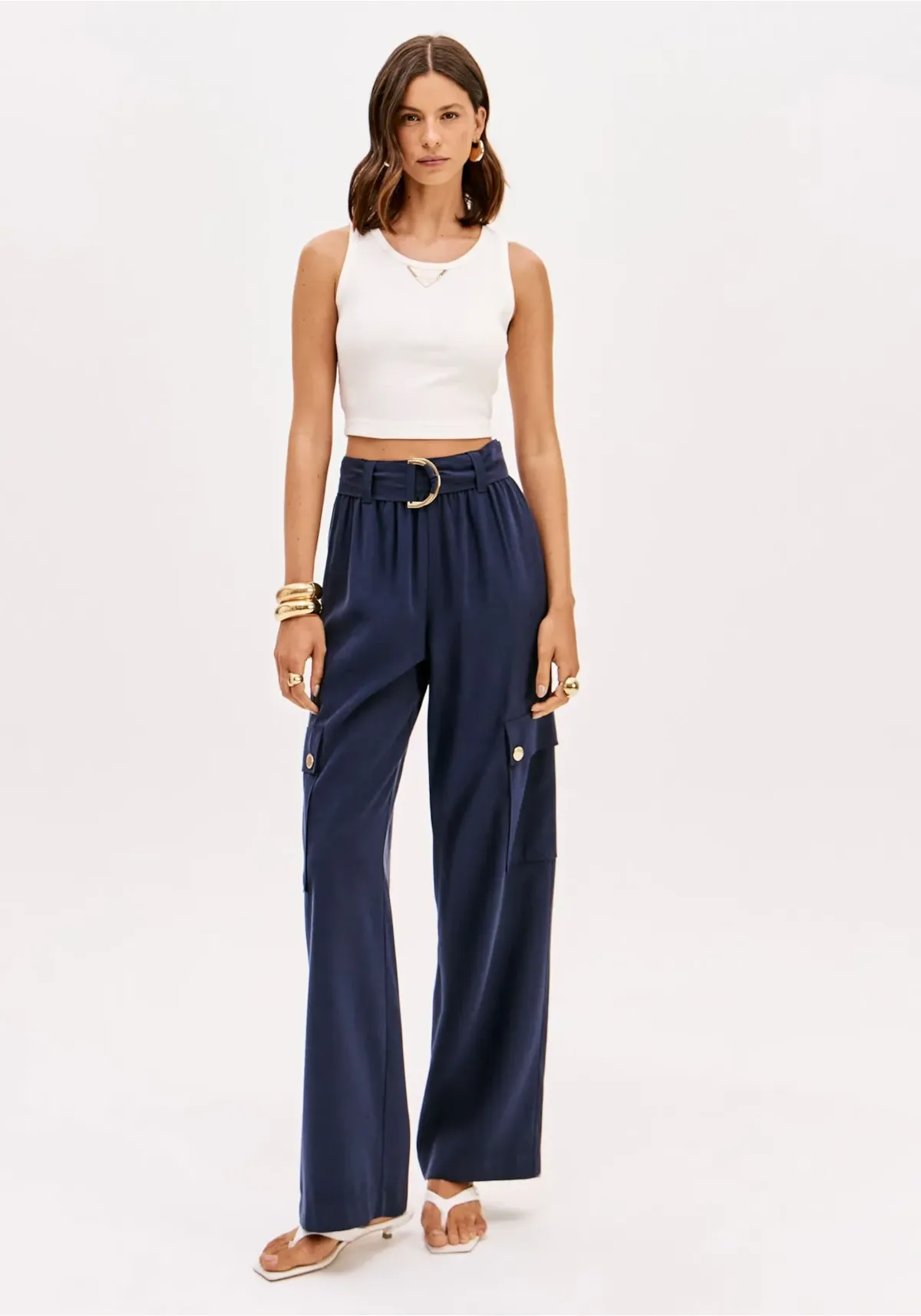 top feito em malha canelada tem modelagem justa ao corpo e comprimento curto, perfeita para composições modernas. O enfeite frontal com corrente adiciona sofisticação ao decote redondo. aposte neste item versátil e eleve seu visual de verão!