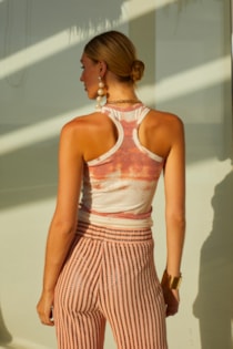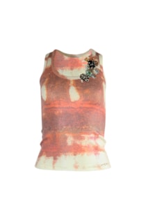 Top de decote redondo e manga cava.Pormenor de fio metalizado.