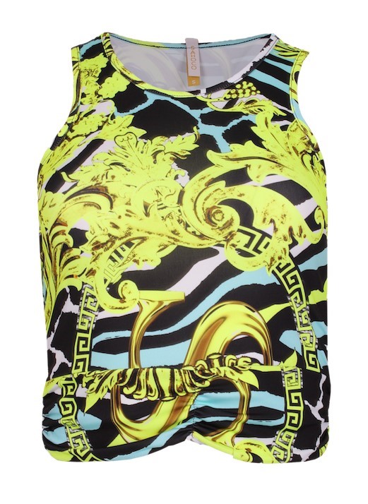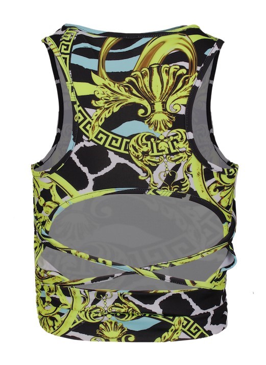Sahoco fitness! Top curto estampado com abertura nas costas.